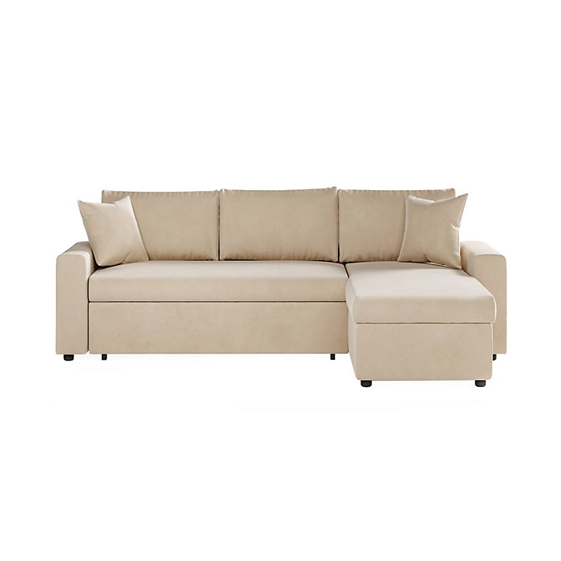 Libellé Canapé d'angle MARIA réversible et convertible avec coffre en velours - Beige