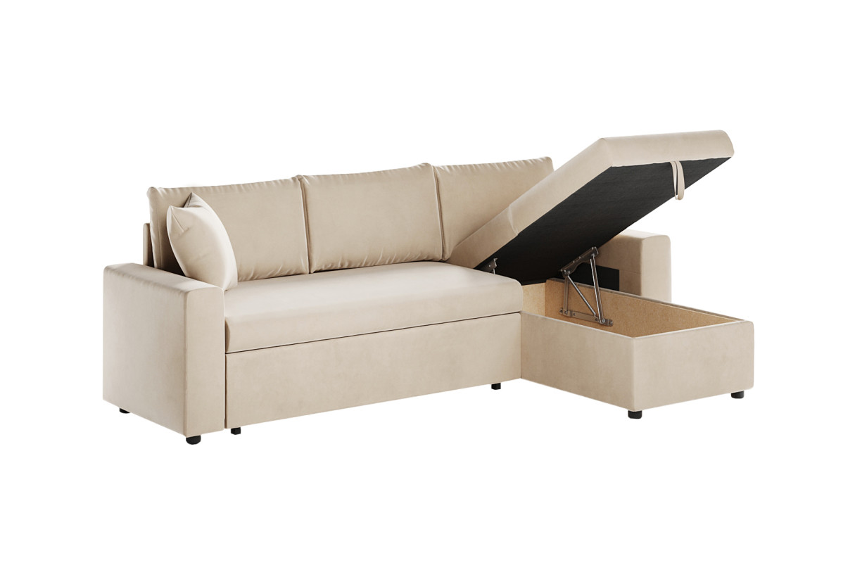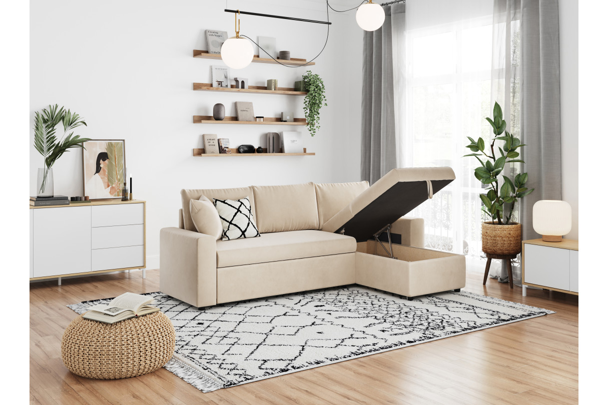 Canapé d'angle MARIA réversible et convertible avec coffre en velours - Beige