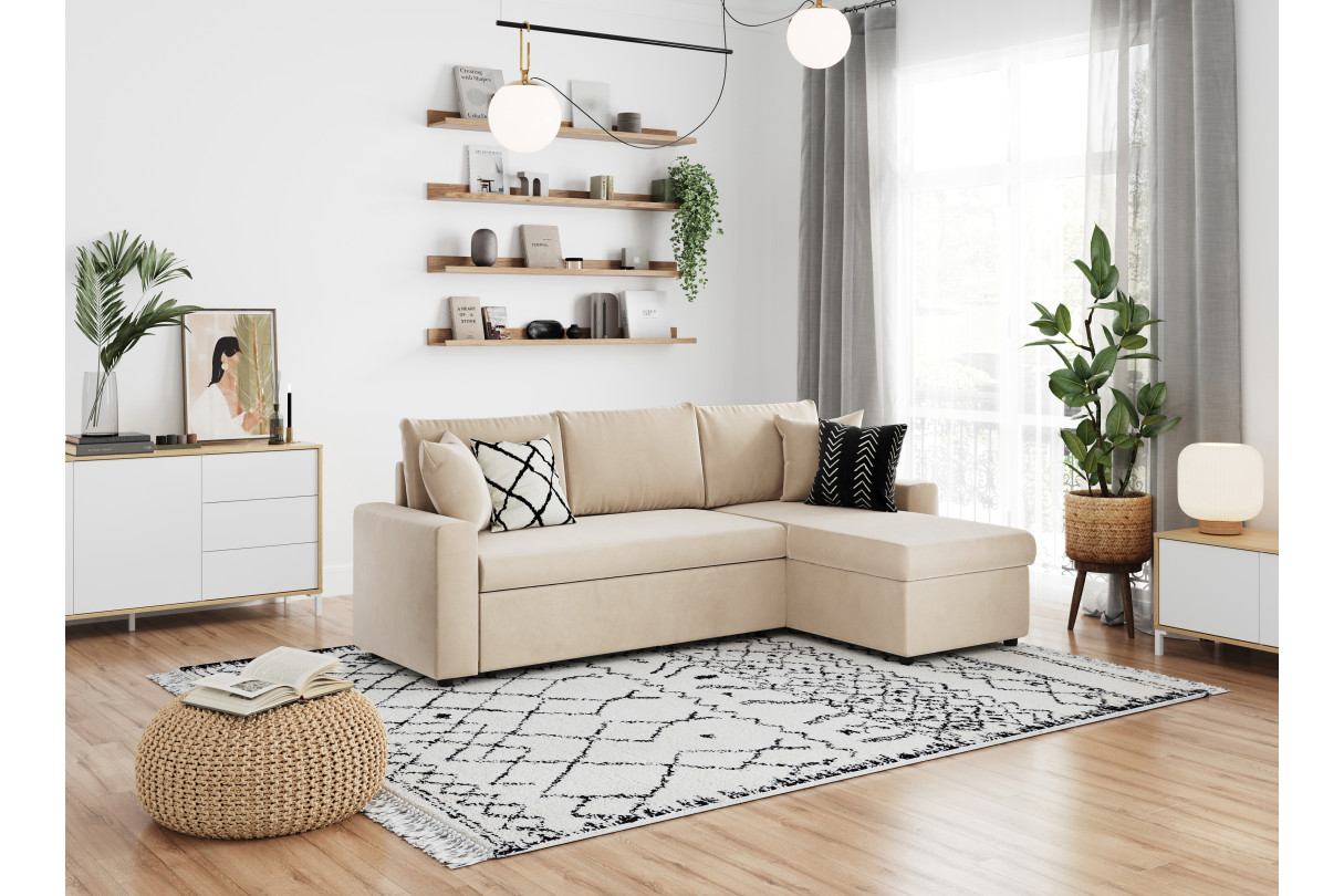 | Libellé | Canapé d'angle MARIA réversible et convertible avec coffre en velours - Beige |