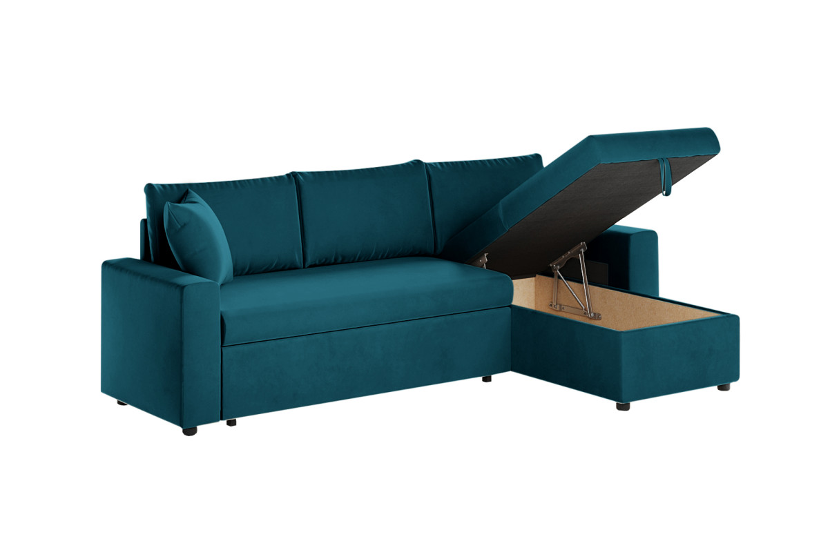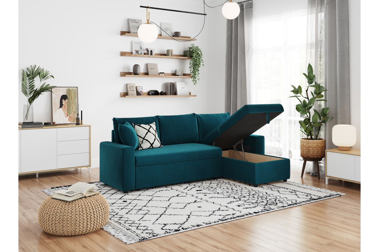 Canapé d'angle MARIA réversible et convertible avec coffre en velours - Bleu