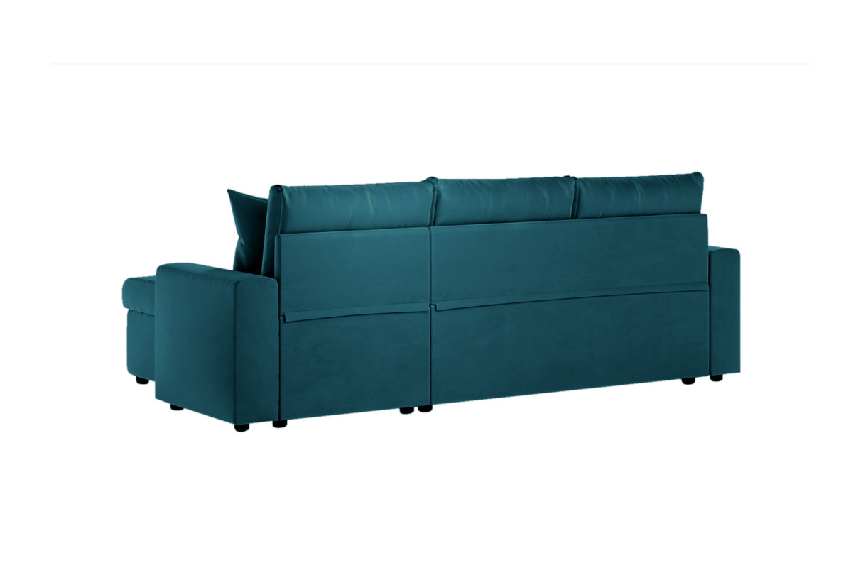 | Libellé | Canapé d'angle MARIA réversible et convertible avec coffre en velours - Bleu |
