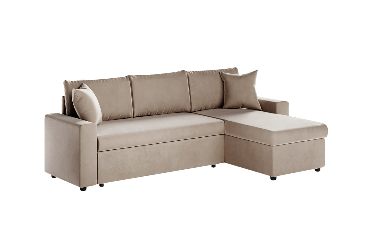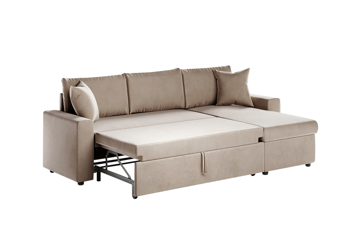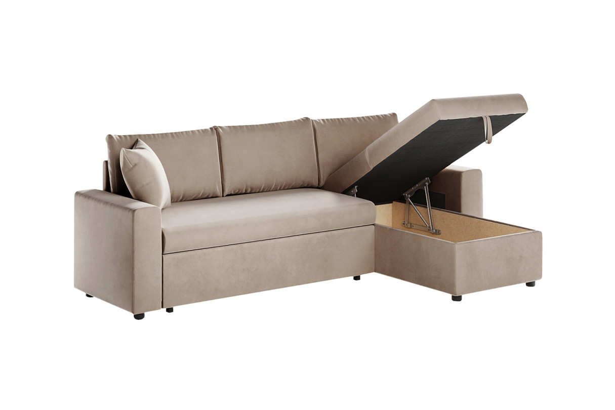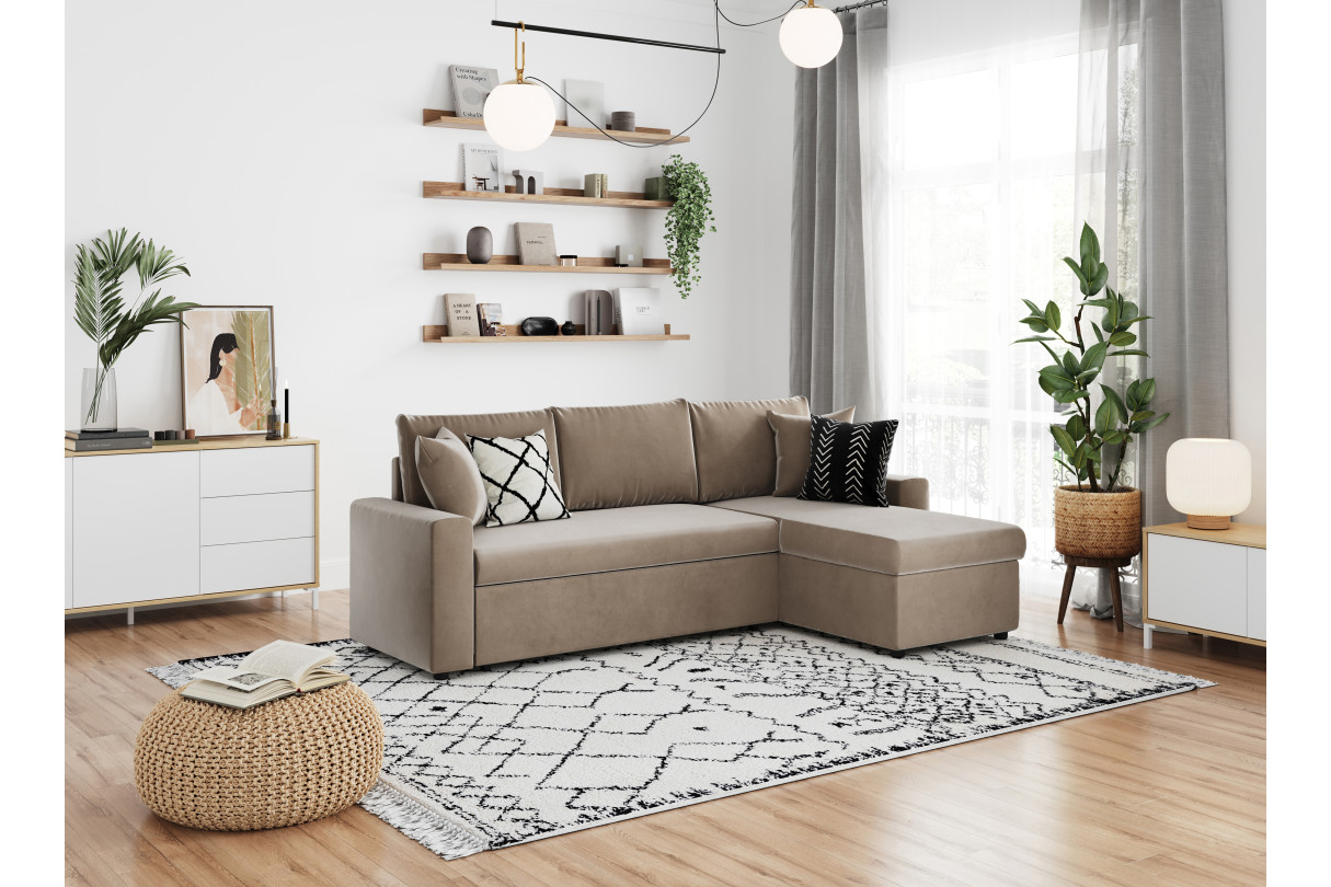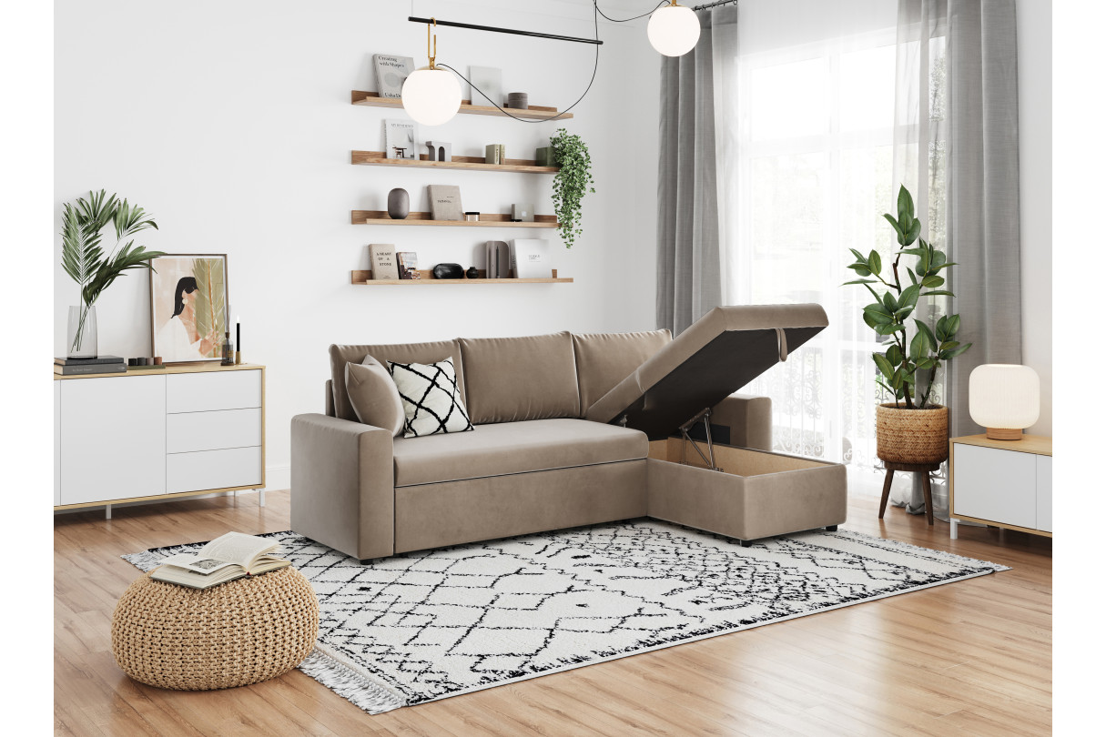 | Libellé | Canapé d'angle MARIA réversible et convertible avec coffre en velours - Grège |