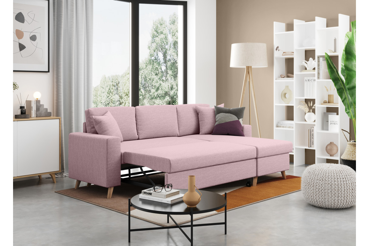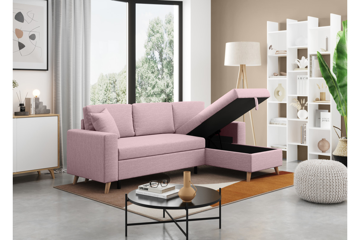 | Libellé | Canapé d'angle MARIA SCANDINAVE Réversible et convertible Avec Coffre en Tissu - Vieux rose |