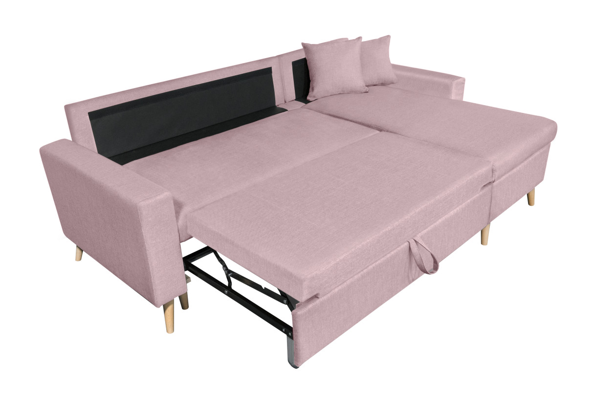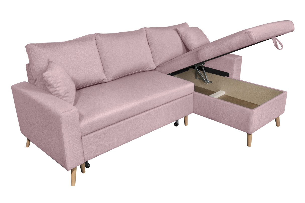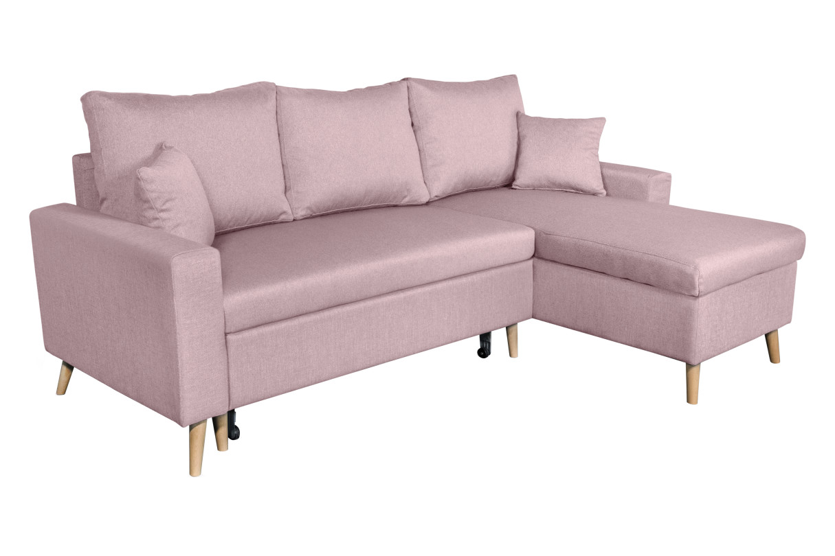 Canapé d'angle MARIA SCANDINAVE Réversible et convertible Avec Coffre en Tissu - Vieux rose