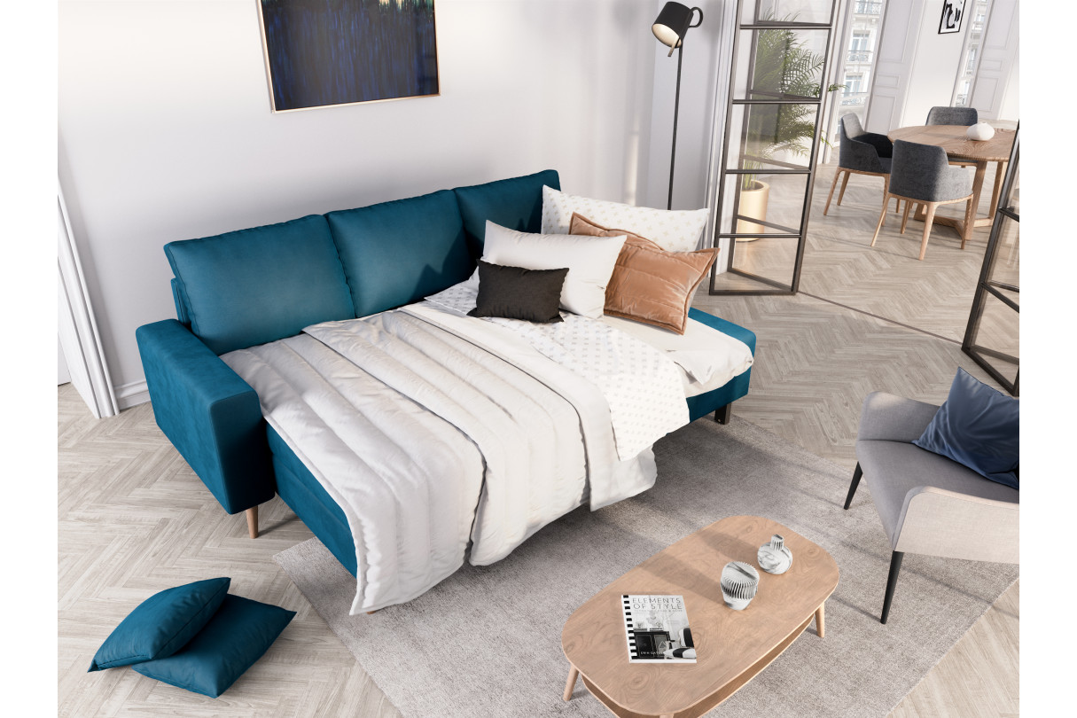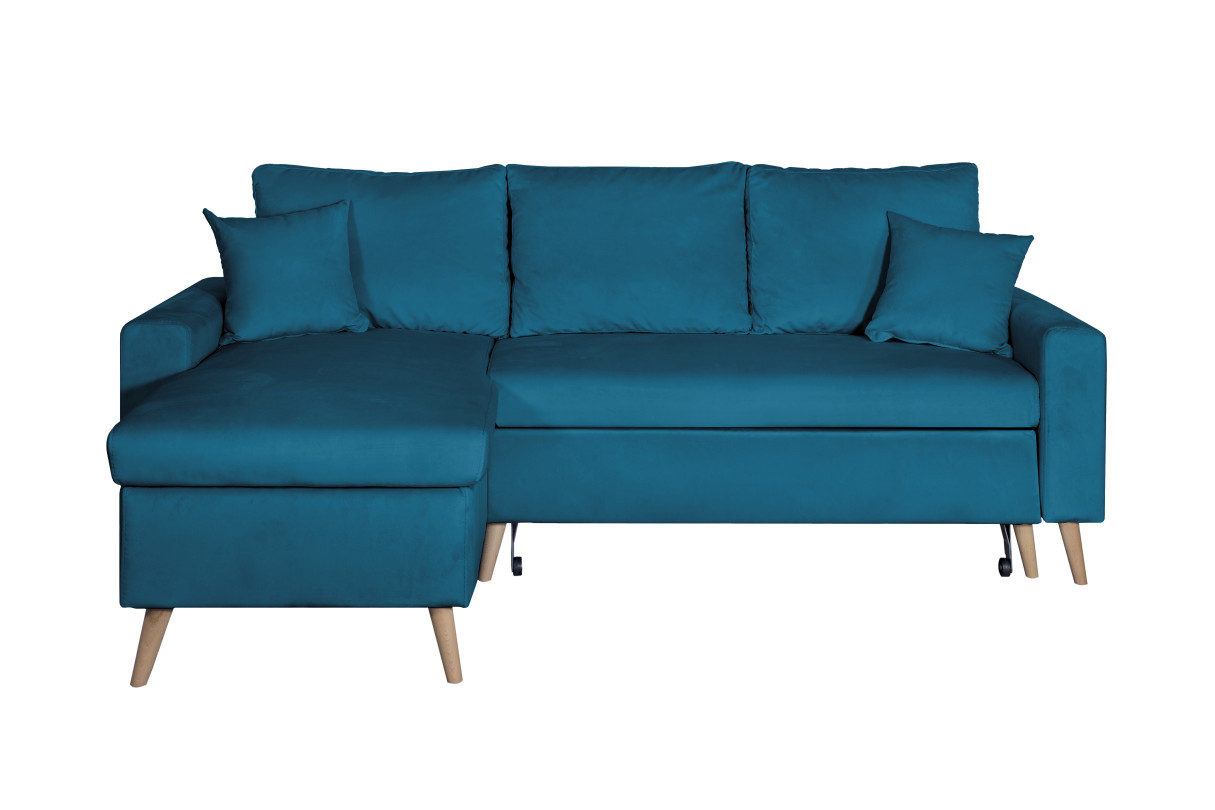 Canapé d'angle MARIA SCANDINAVE VELOURS réversible et convertible avec coffre - Bleu pétrole