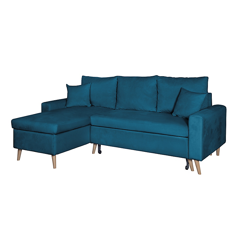 | Libellé | Canapé d'angle MARIA SCANDINAVE VELOURS réversible et convertible avec coffre - Bleu pétrole |
