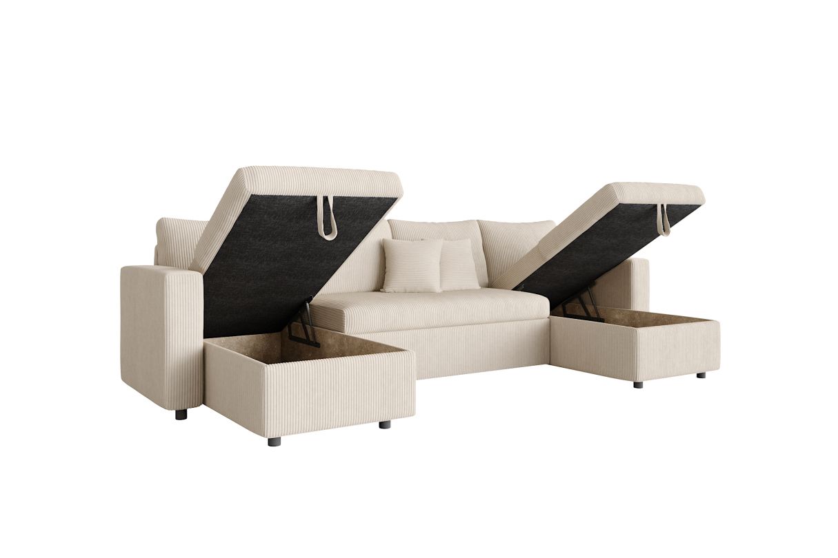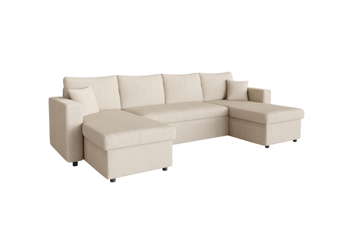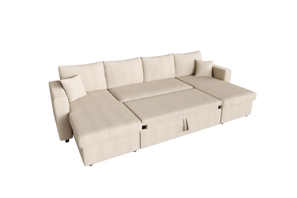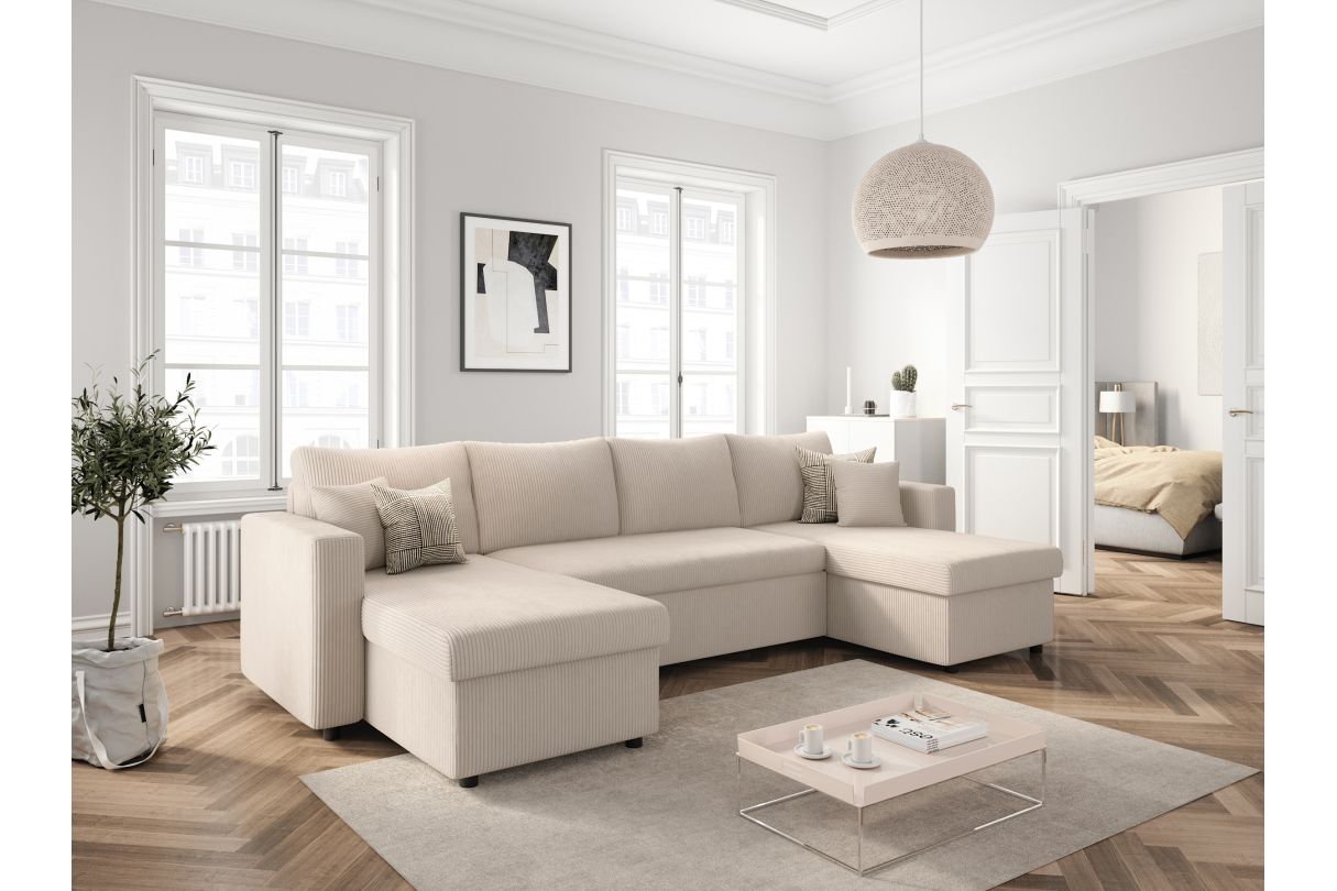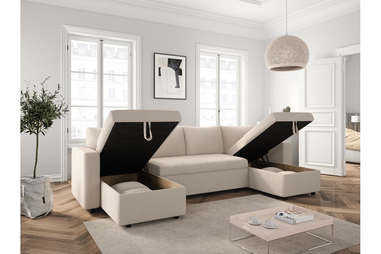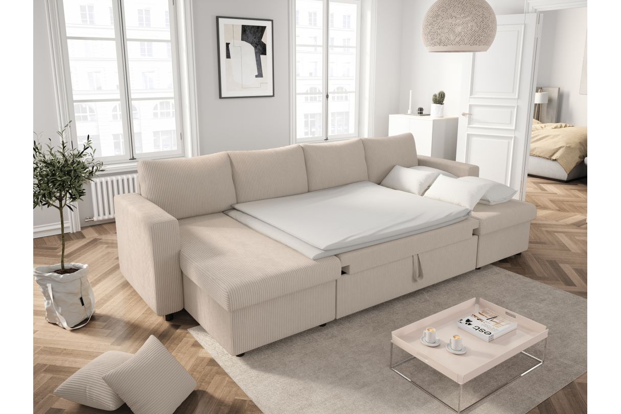 | Libellé | Canapé d'angle panoramique MARIA convertible avec 2 coffres en velours côtelé - Beige |