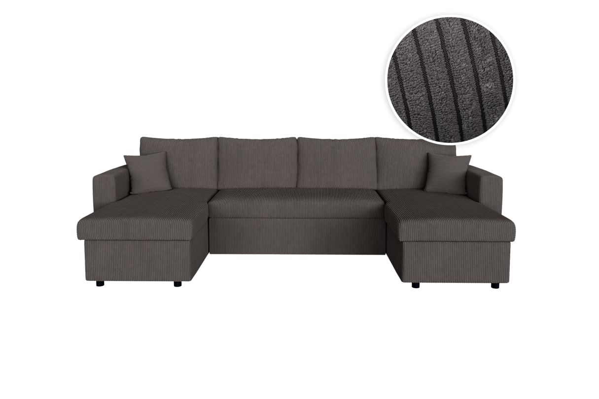 | Libellé | Canapé d'angle panoramique MARIA convertible avec 2 coffres en velours côtelé - Gris foncé |