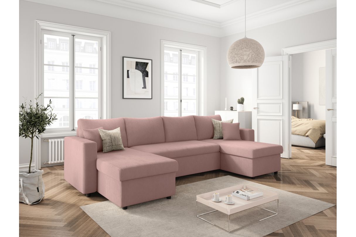 | Libellé | Canapé d'angle panoramique MARIA convertible avec 2 coffres en velours côtelé - Rose |