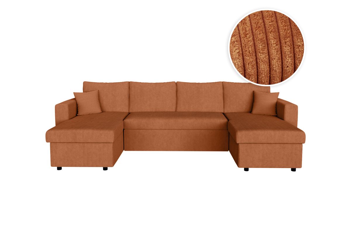 | Libellé | Canapé d'angle panoramique MARIA convertible avec 2 coffres en velours côtelé - Terracotta |