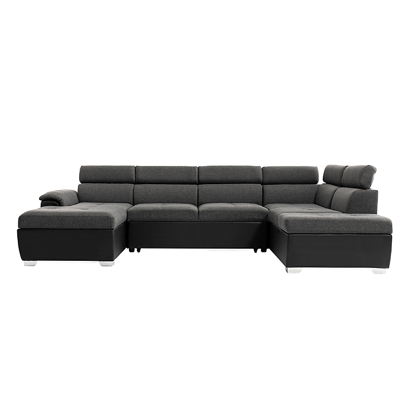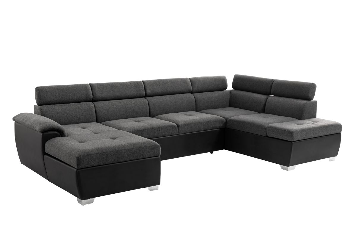 | Libellé | Canapé d'angle Panoramique PAOLA convertible en Simili et Tissu - Gris et Noir |