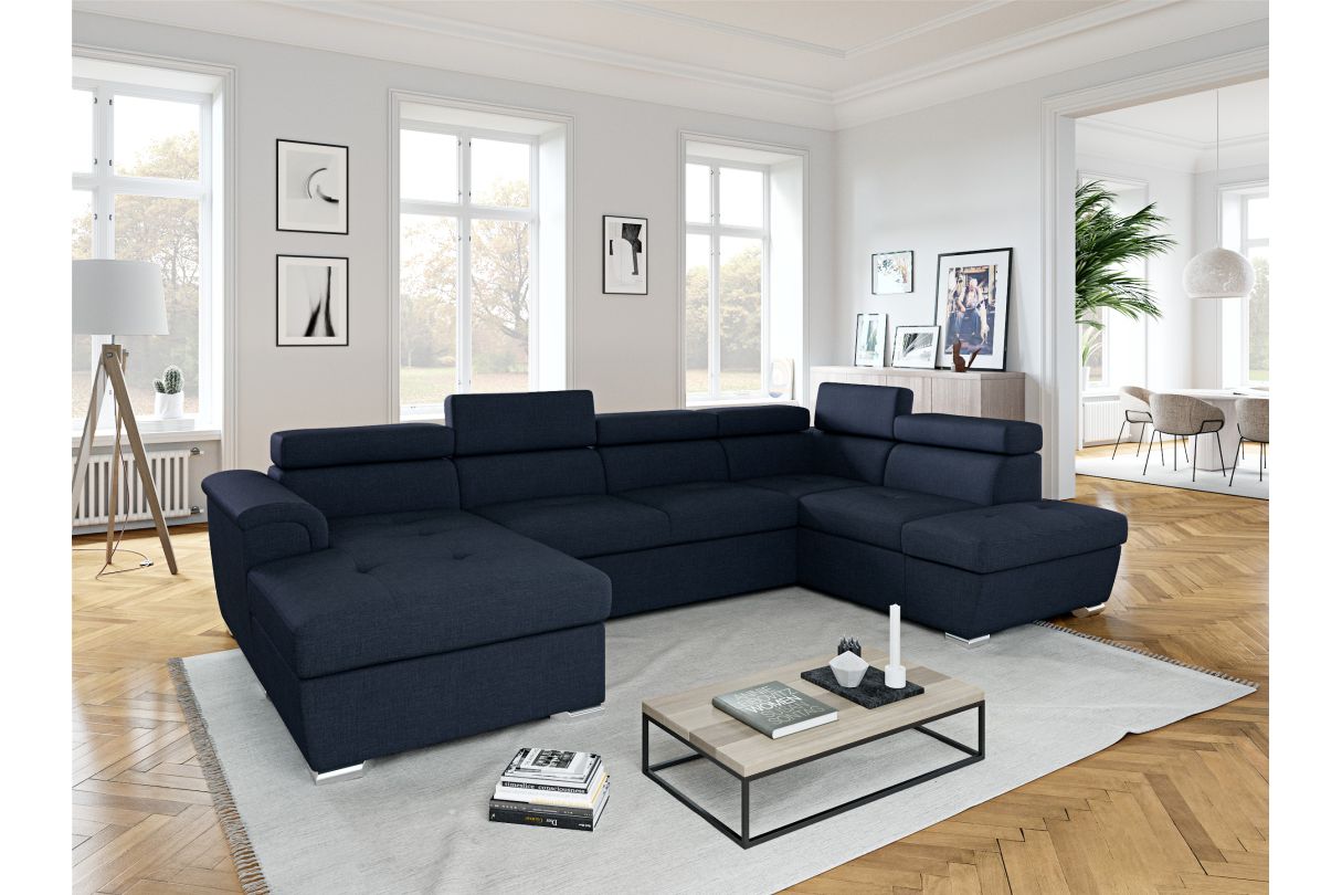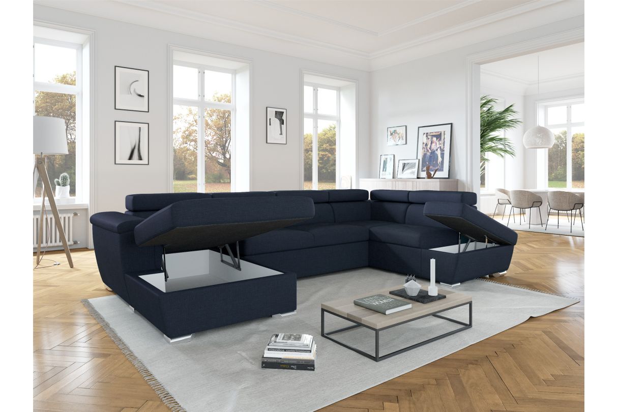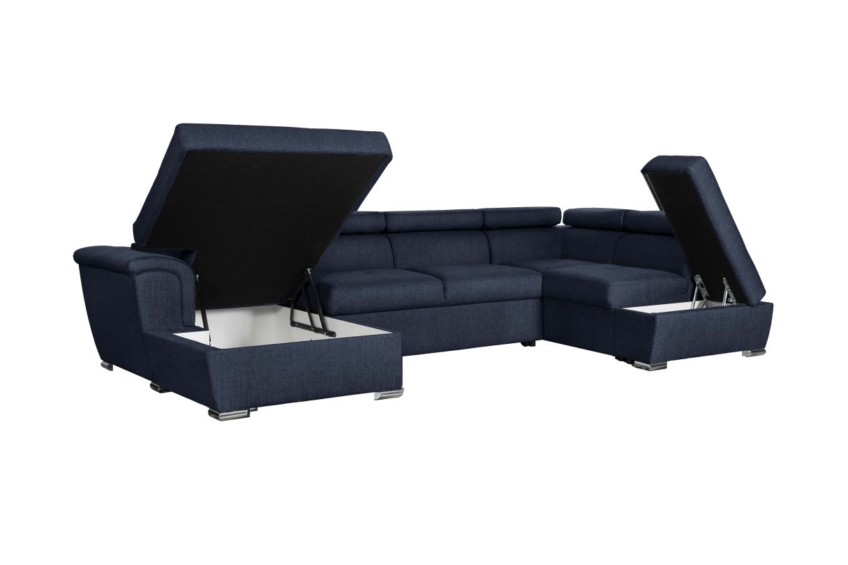 | Plus produit | Canapé panoramique spacieux | Convertible en lit | Deux coffres de rangement |
