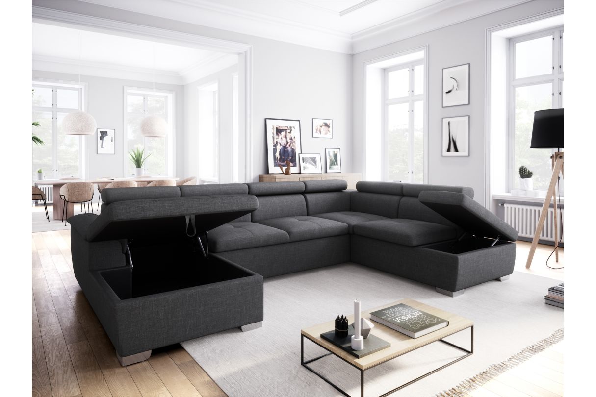 | Libellé | Canapé d'angle Panoramique PAOLA convertible en Tissu - Gris foncé |