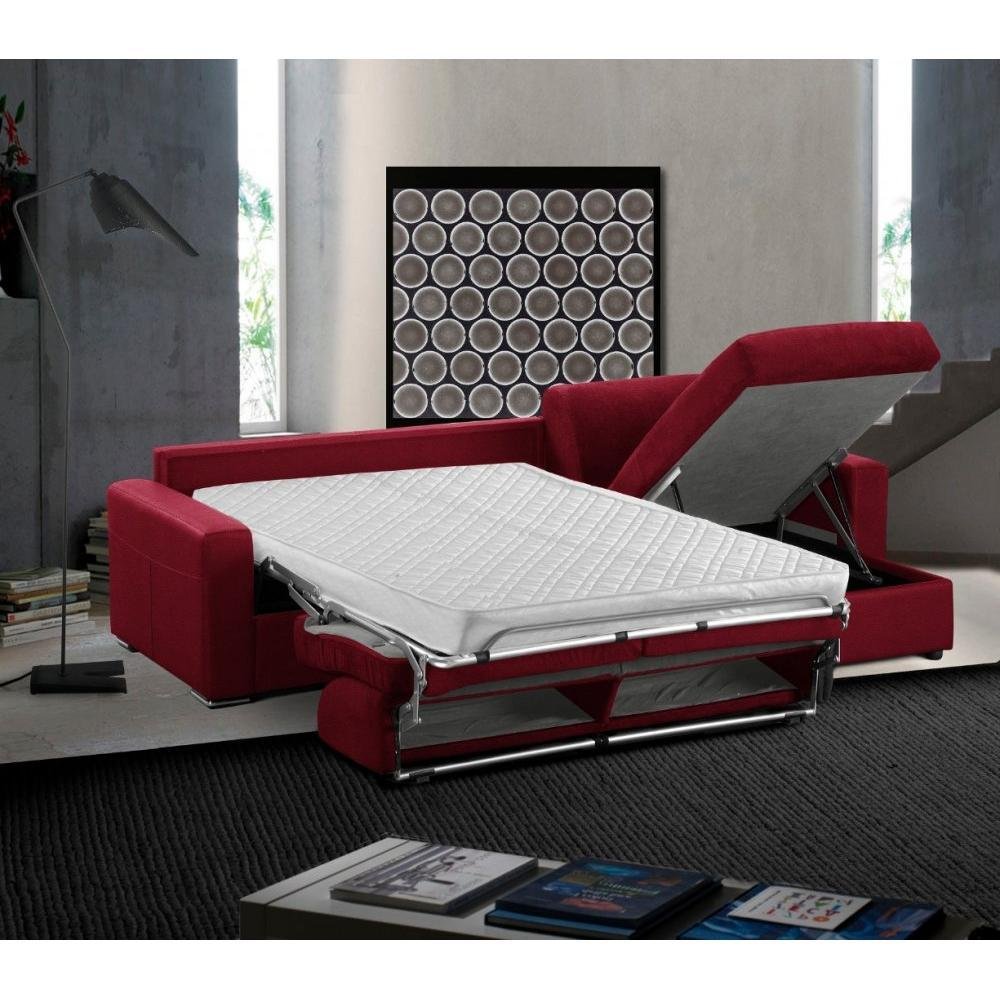 Canapé d'angle réversible express 120 IMPERIAL matelas 22 cm sommier lattes velours Velluto rouge