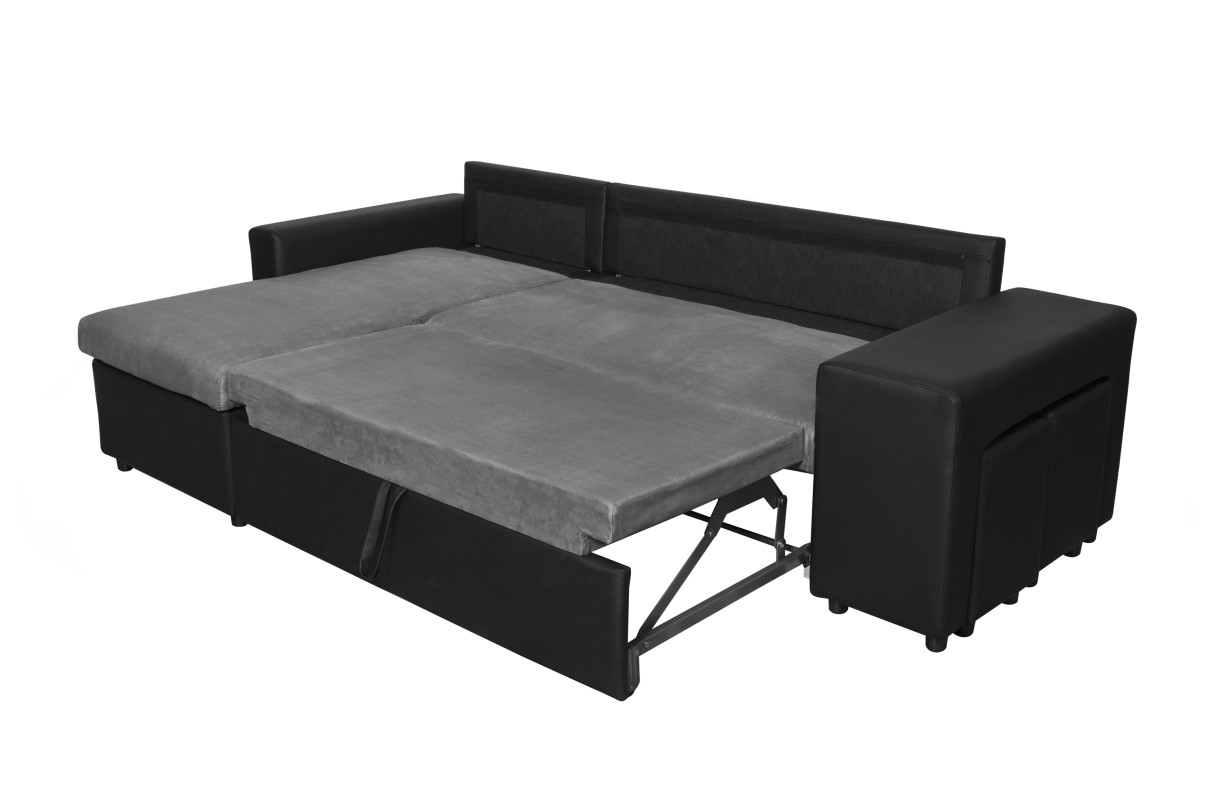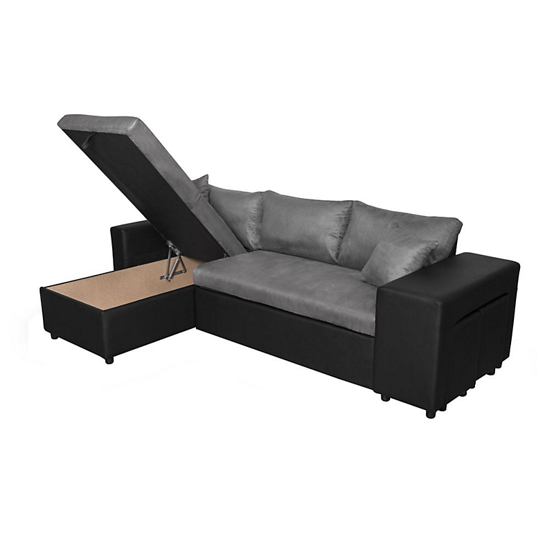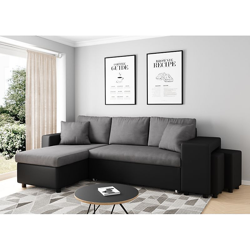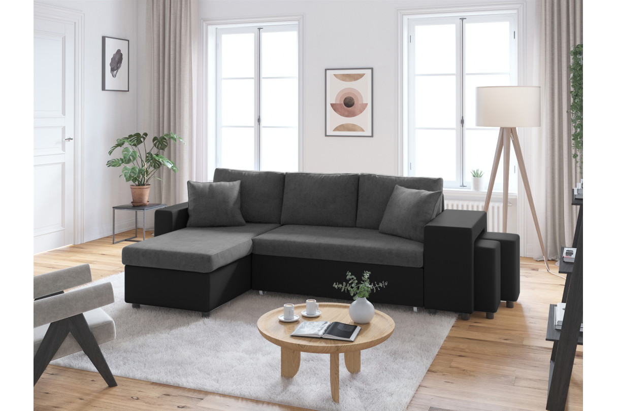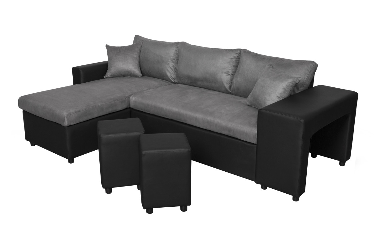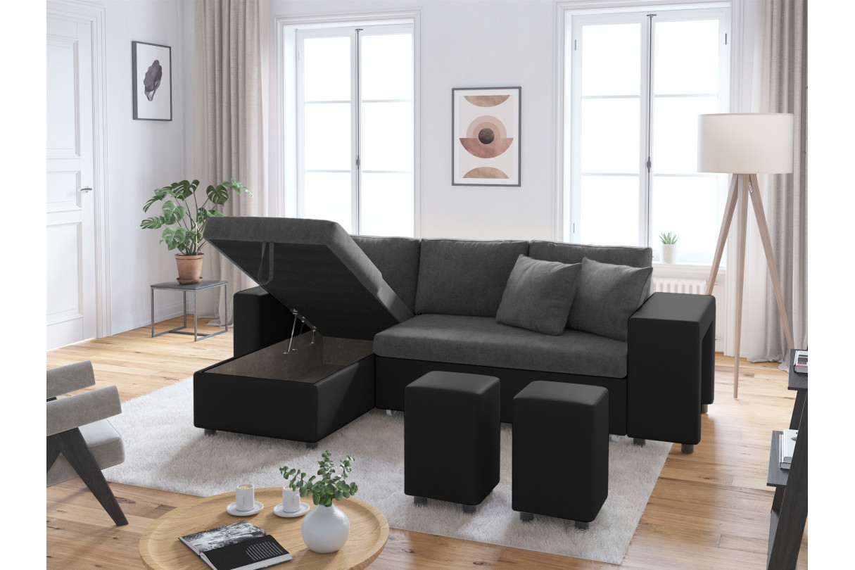 Canapé d'angle réversible OSLO avec coffre et poufs droit en bi-matière