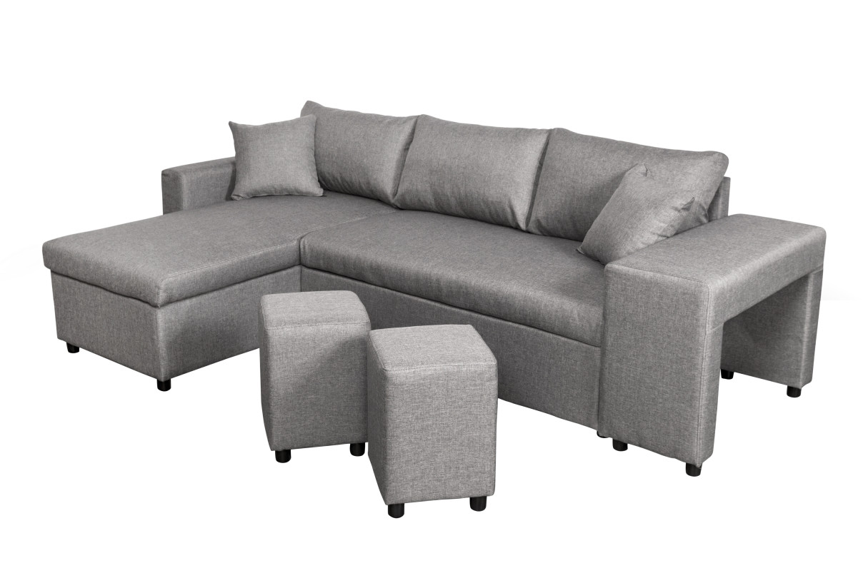| Libellé | Canapé d'angle réversible OSLO avec coffre et poufs droit - Tissu gris clair |