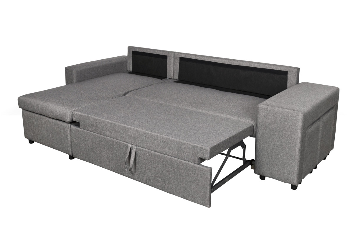 Ce canapé moderne 3 places en tissu a été pensé pour vous offrir gain de place et praticité. Gain de place grâce à son grand coffre de rangement dissimulé sous la méridienne pour un salon toujours bien rangé. Et le côté pratique grâce à ses poufs stockés sous la méridienne pour que vous soyez toujours opérationnels quand vos amis arrivent à l'improviste. Le canapé d'angle OSLO est également convertible en lit.