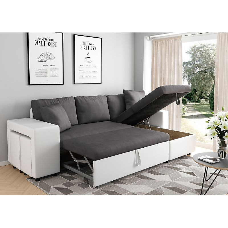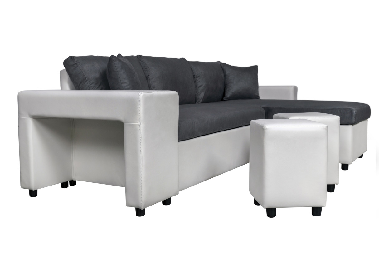 Canapé d'angle réversible OSLO avec coffre et poufs gauche en bi-matière