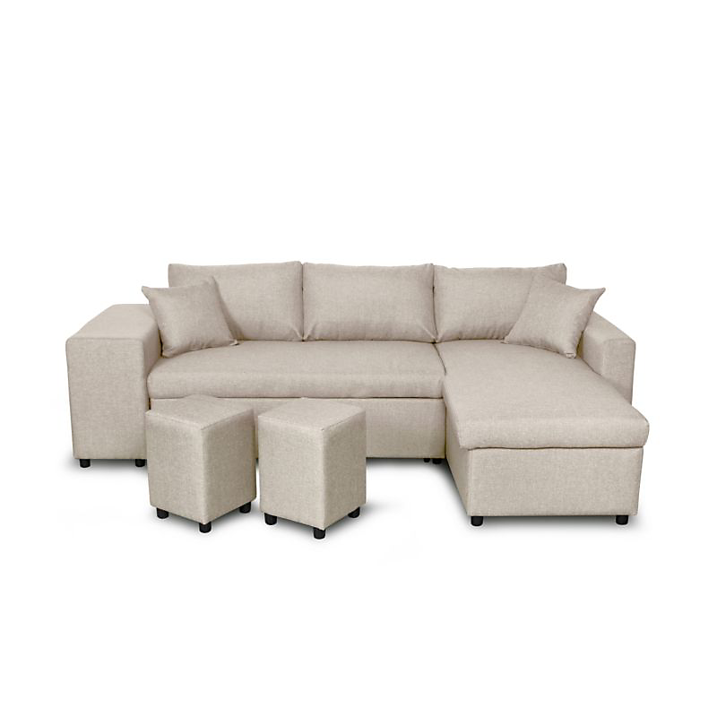 | Libellé | Canapé d'angle réversible OSLO avec coffre et poufs gauche en tissu beige |
