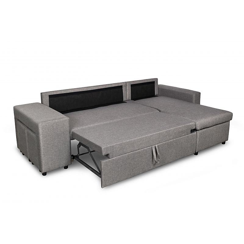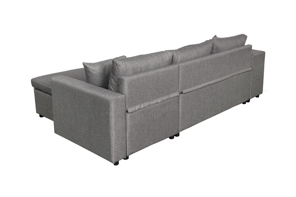 | Libellé | Canapé d'angle réversible OSLO avec coffre et poufs gauche - Tissu gris clair |