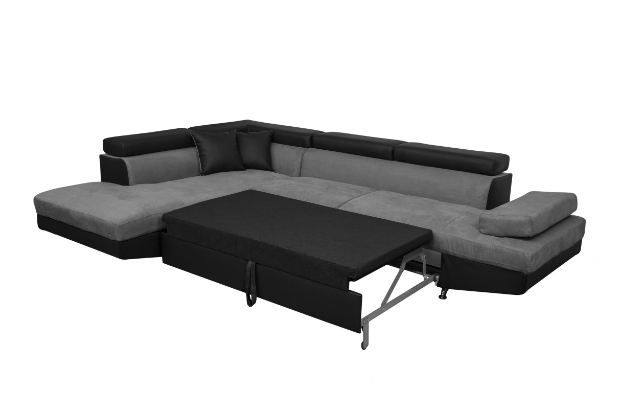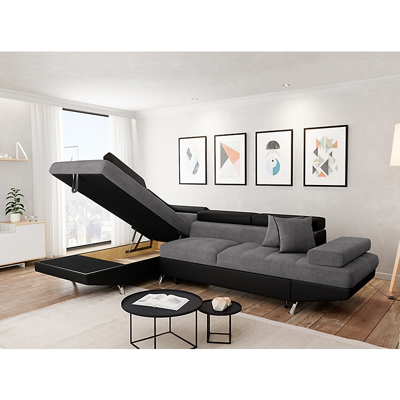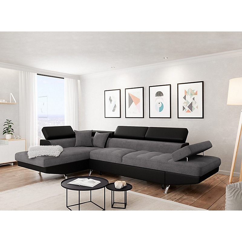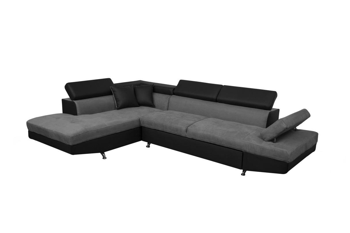 | Libellé | Canapé d'angle RIO convertible avec coffre en microfibre et simili - Angle Gauche, Gris et Noir |