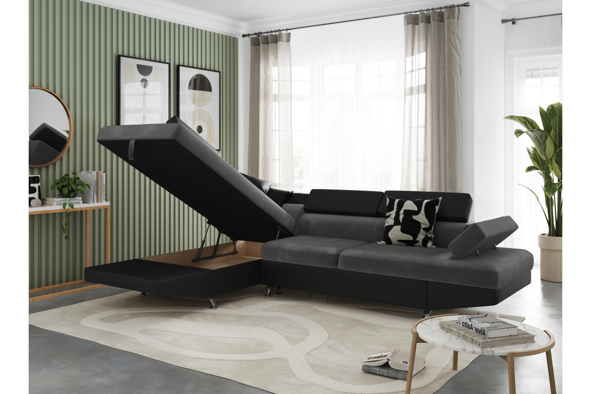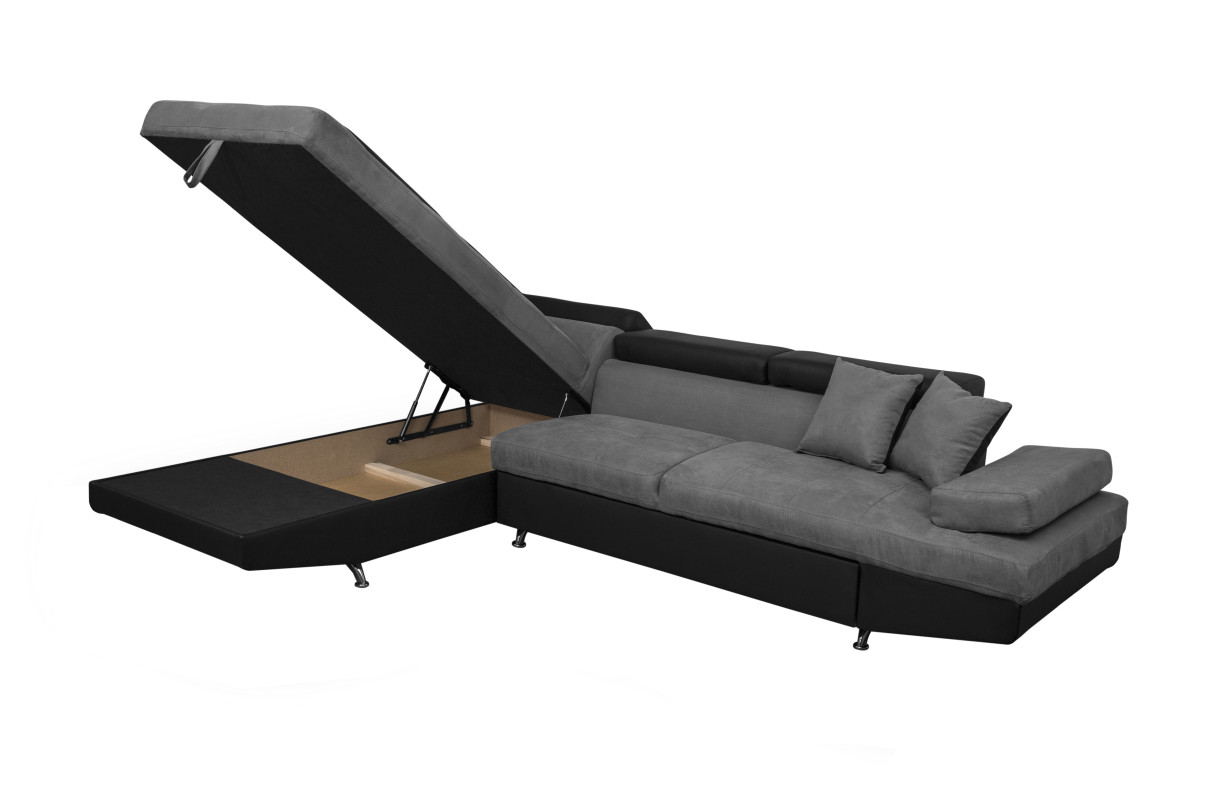 Canapé d'angle RIO convertible avec coffre en microfibre et simili - Angle Gauche, Gris et Noir