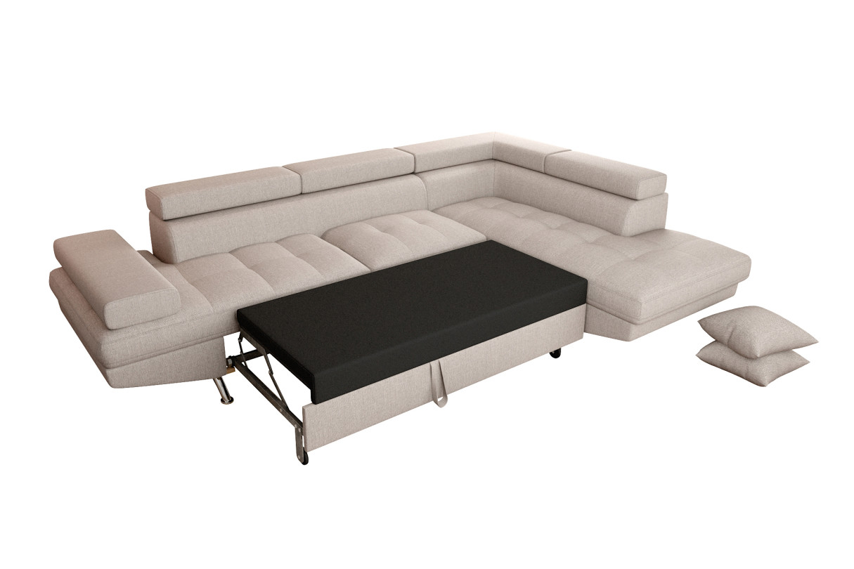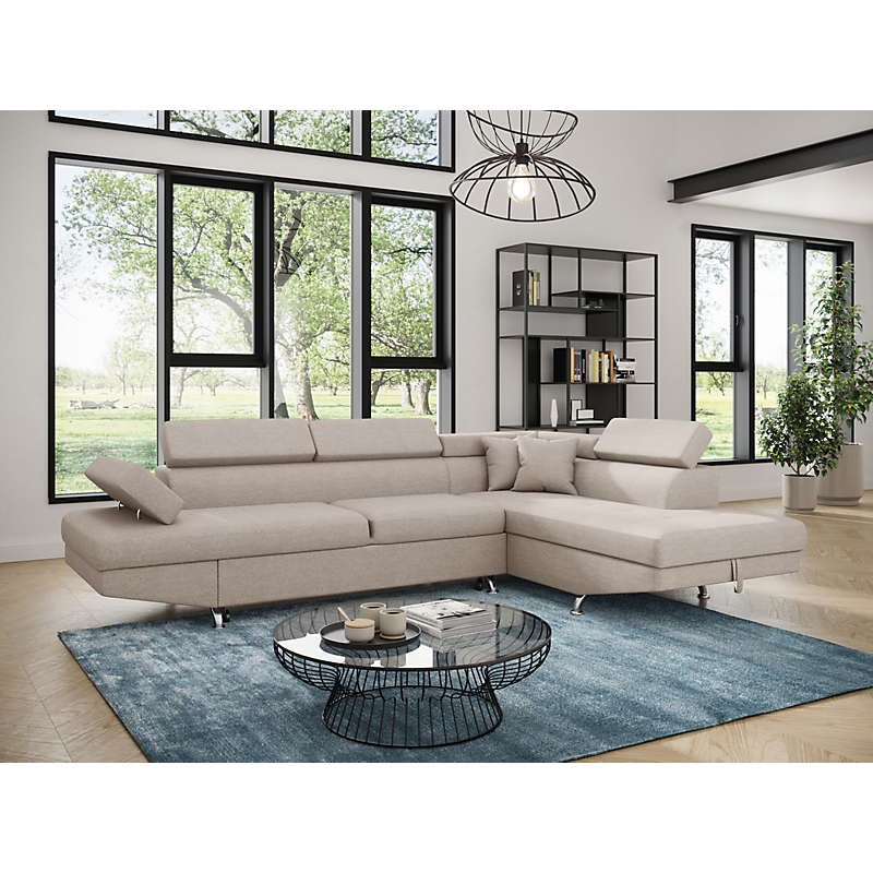 | Libellé | Canapé d'angle RIO convertible avec coffre en tissu - Angle Droit, Beige |