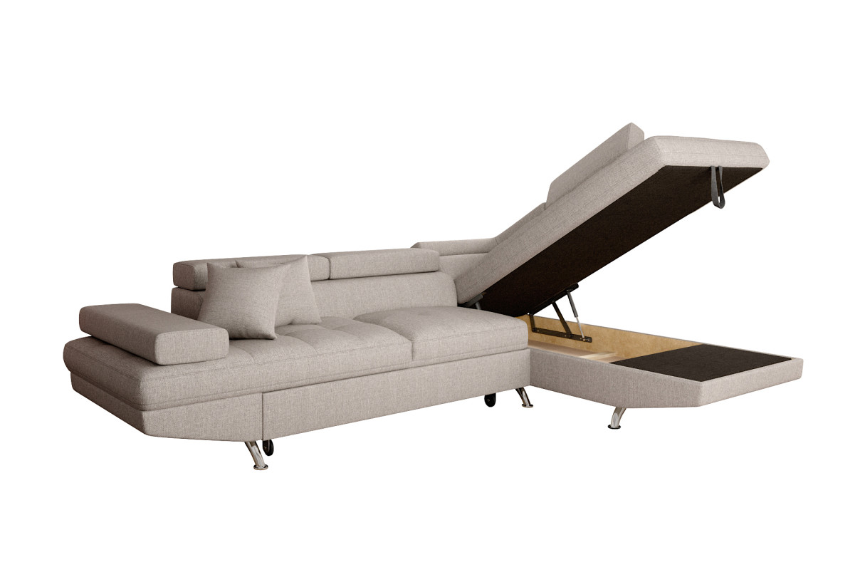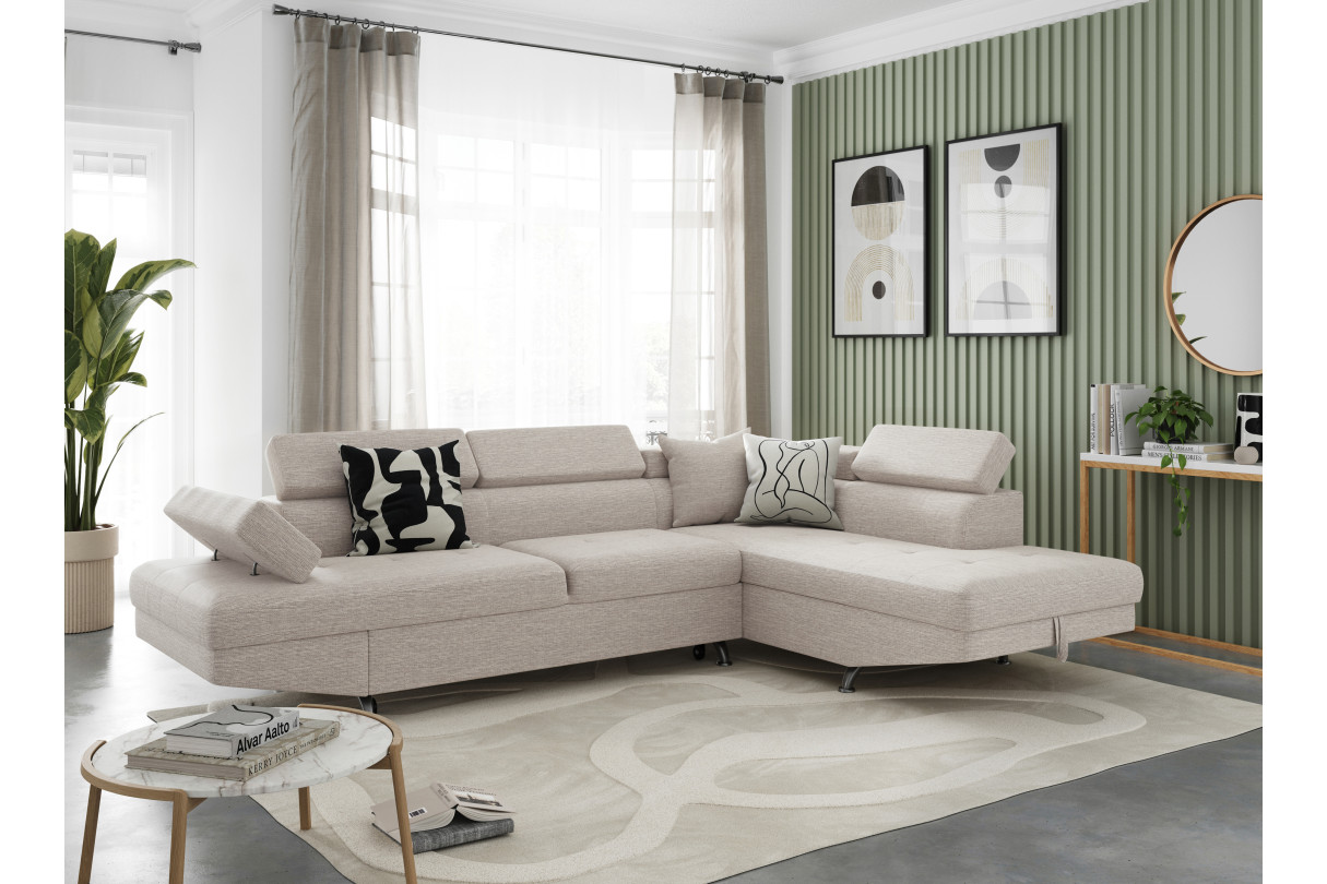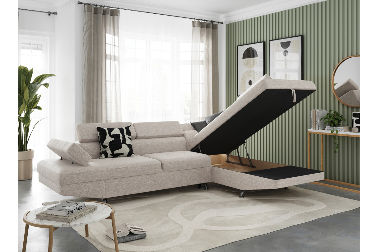 Canapé d'angle RIO convertible avec coffre en tissu - Angle Droit, Beige