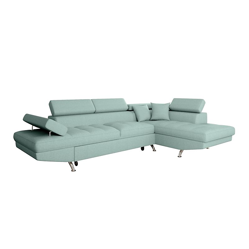 | Libellé | Canapé d'angle RIO convertible avec coffre en tissu - Angle Droit, Bleu clair |