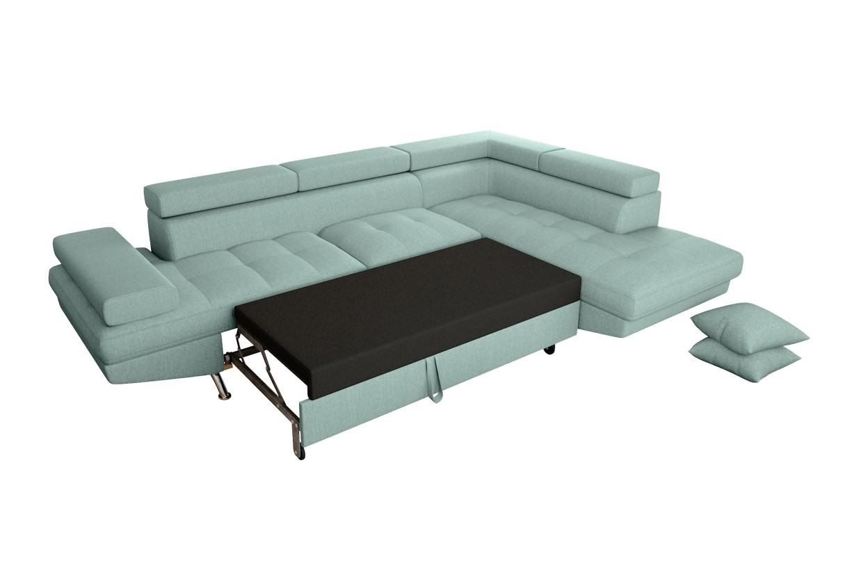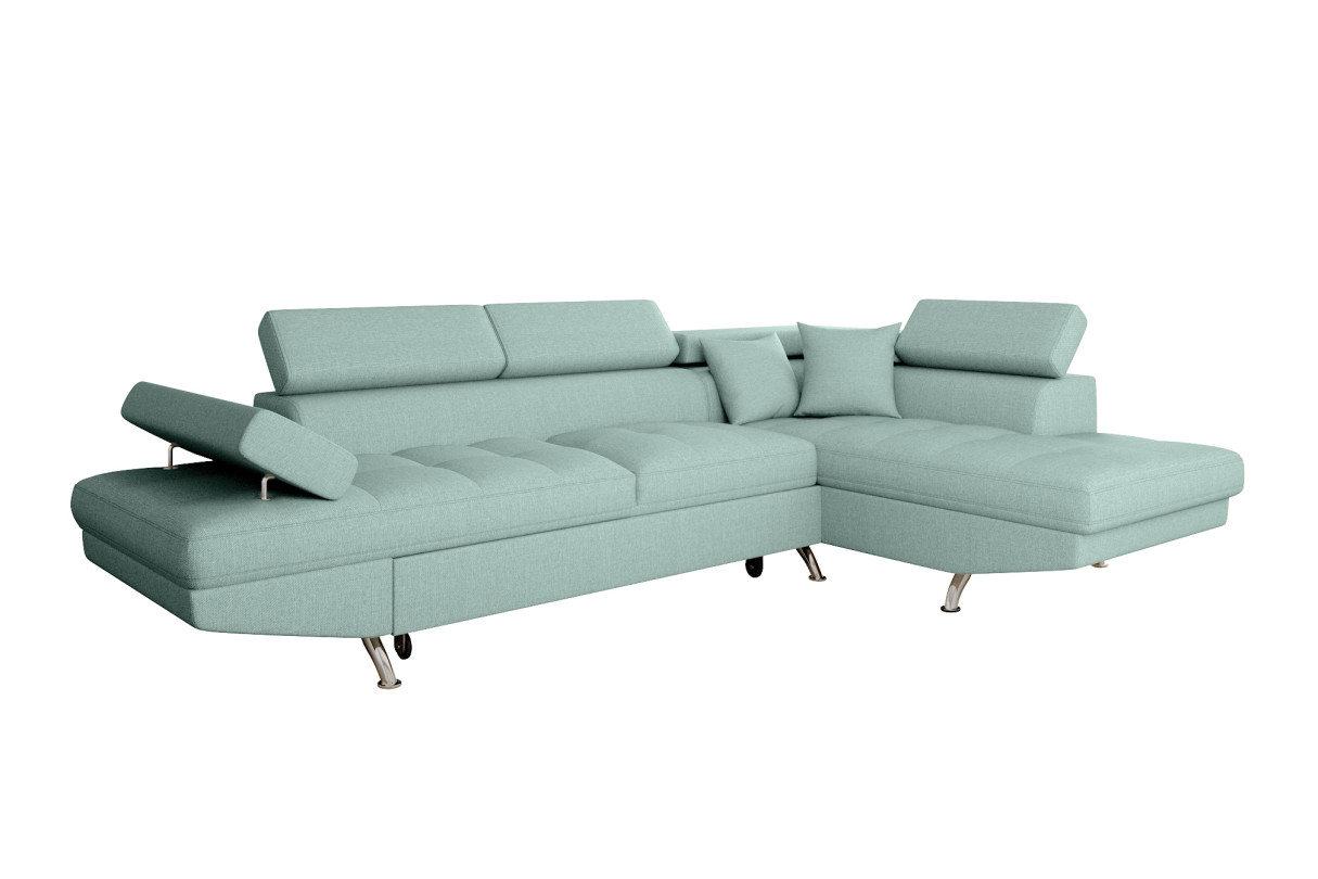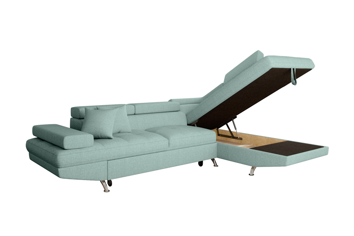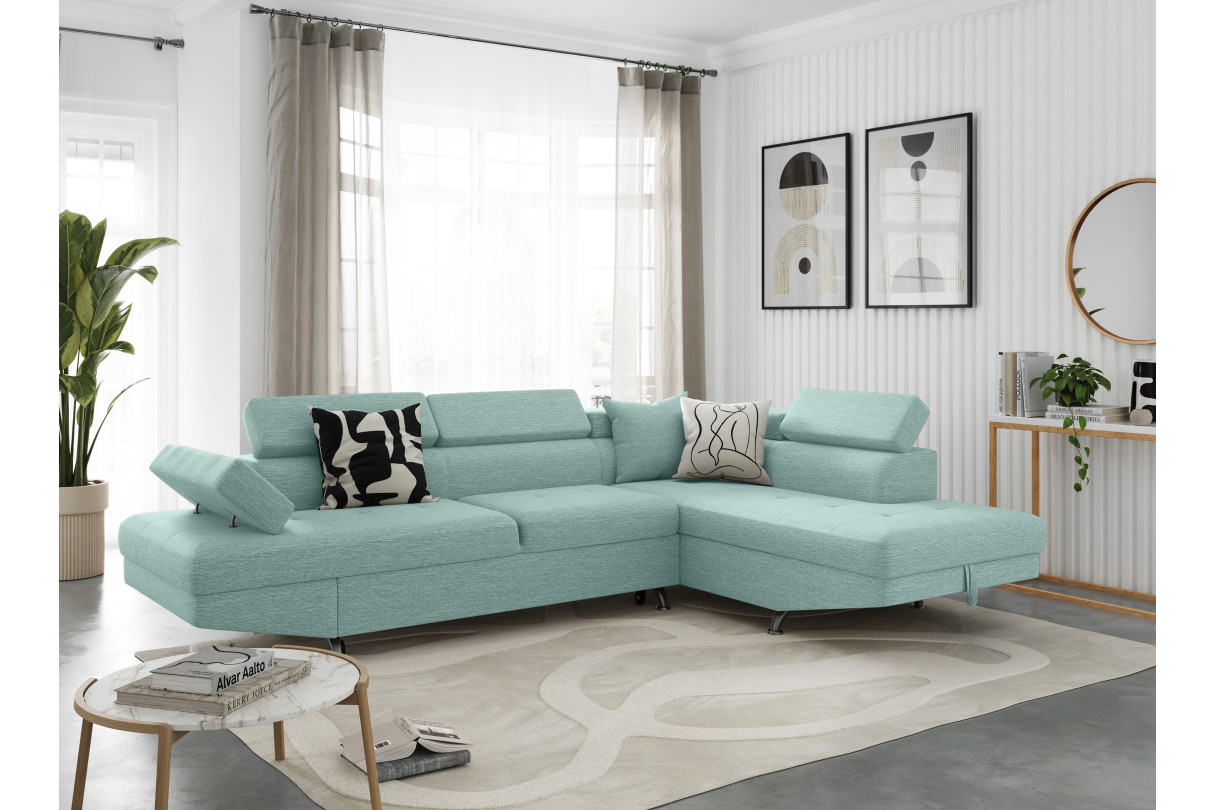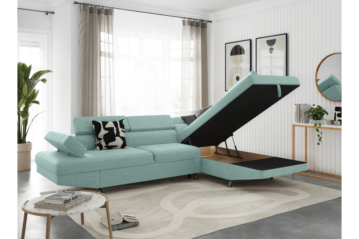 Canapé d'angle RIO convertible avec coffre en tissu - Angle Droit, Bleu clair