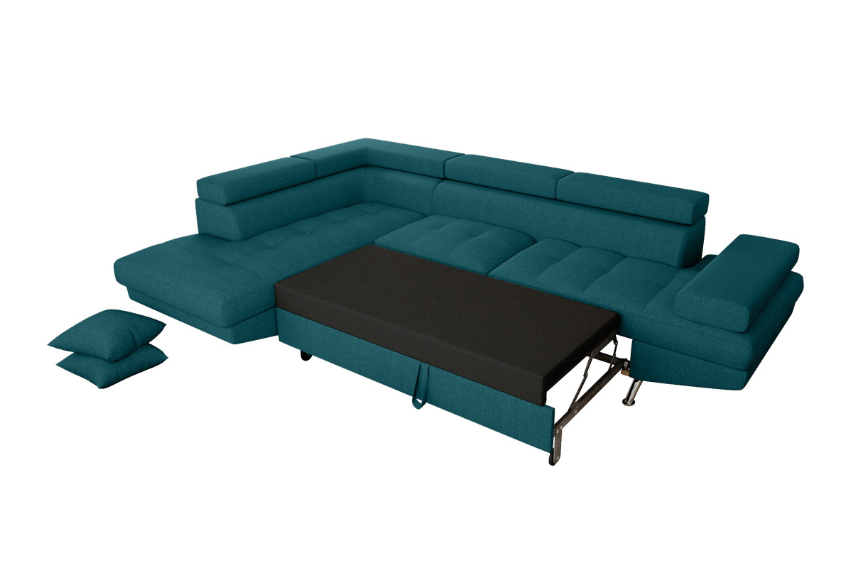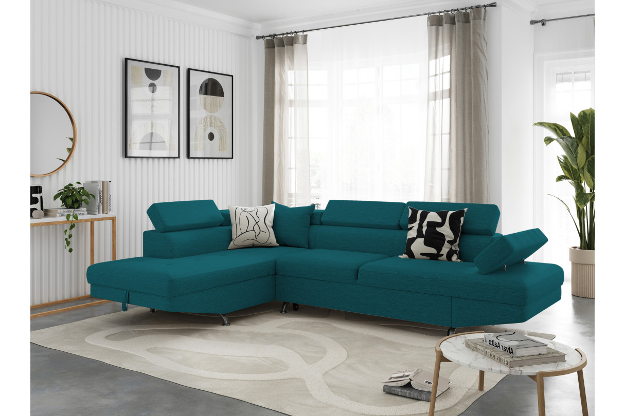 Canapé d'angle RIO convertible avec coffre en tissu - Angle Gauche, Bleu