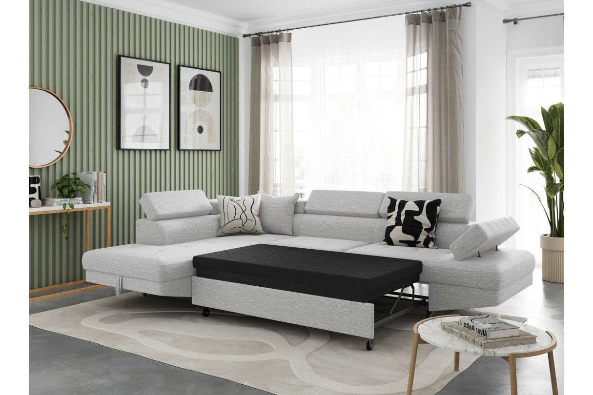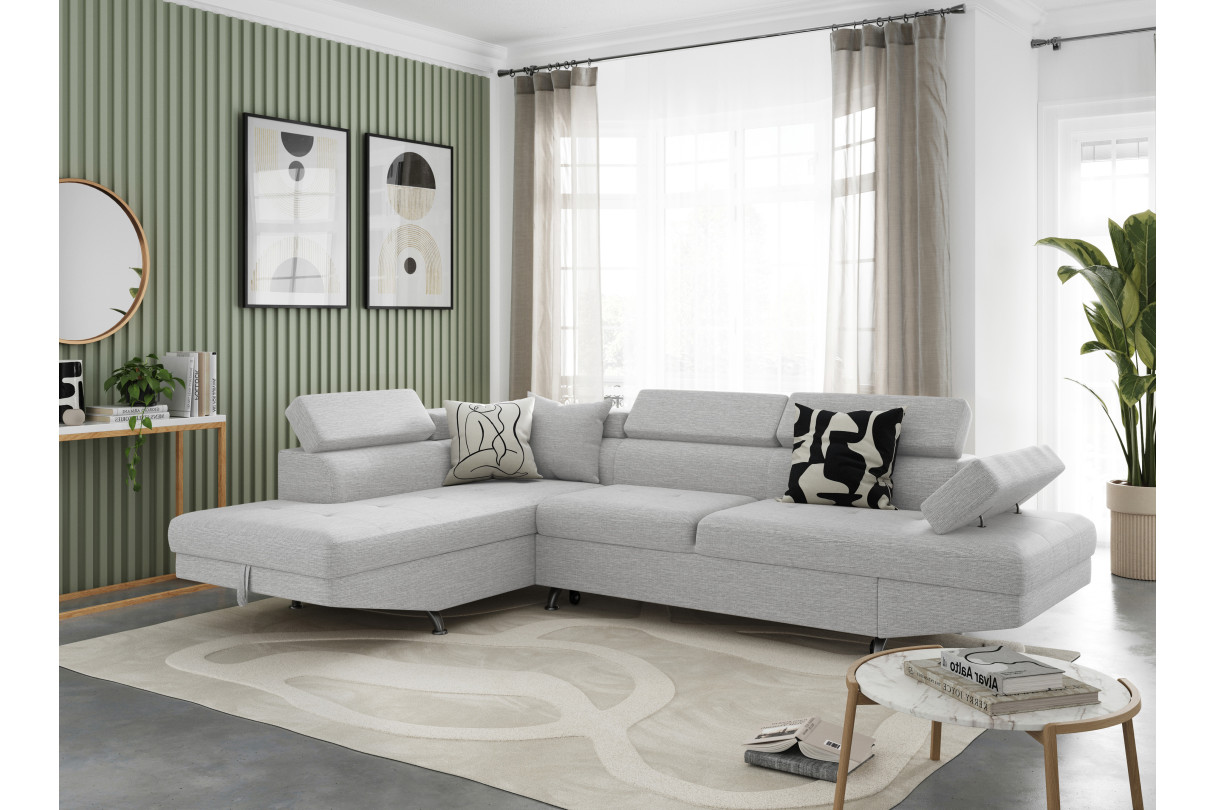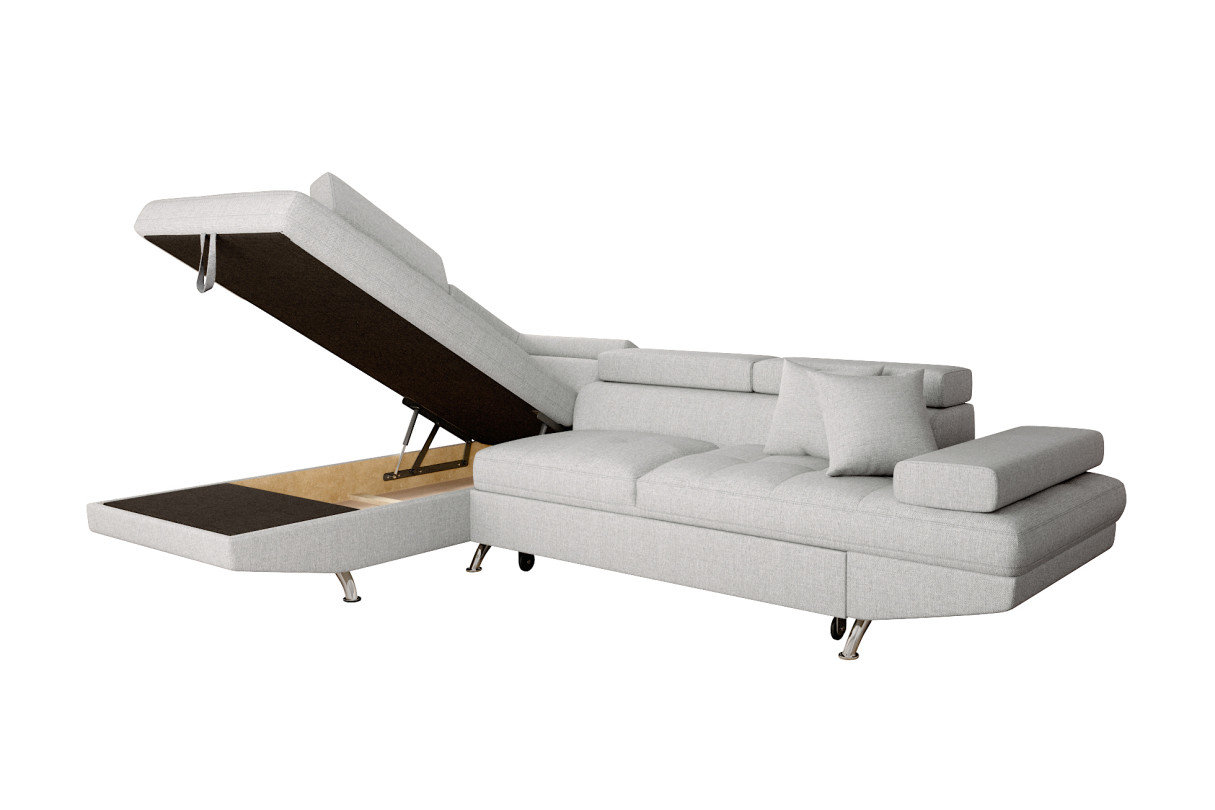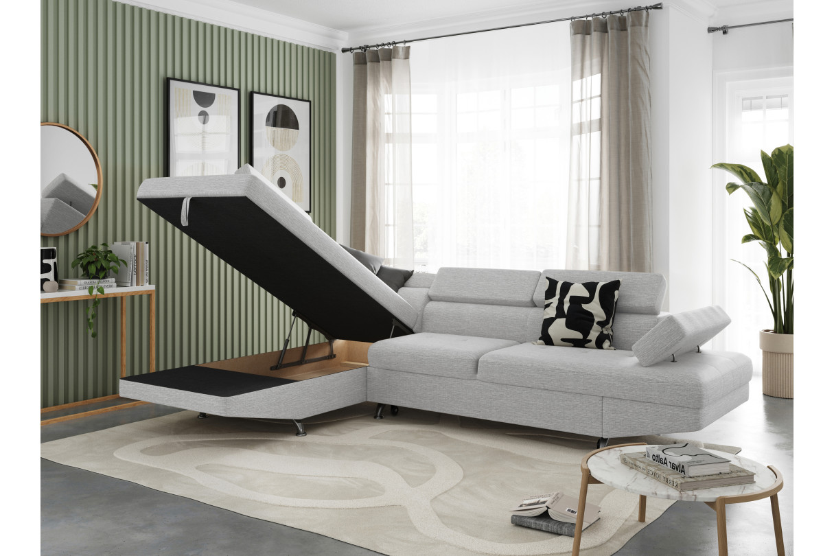 Canapé d'angle RIO convertible avec coffre en tissu - Angle Gauche, Gris perle