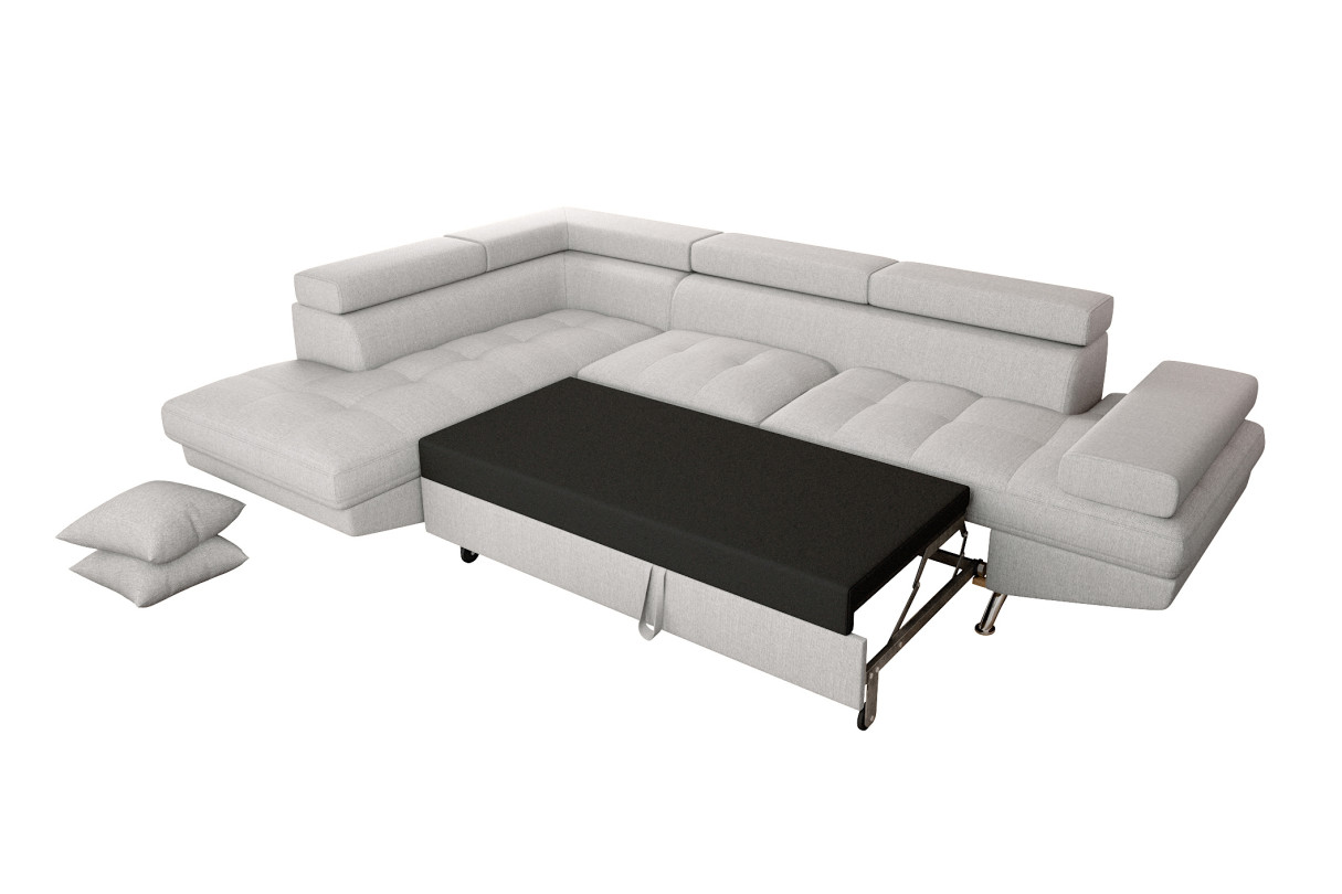 | Libellé | Canapé d'angle RIO convertible avec coffre en tissu - Angle Gauche, Gris perle |