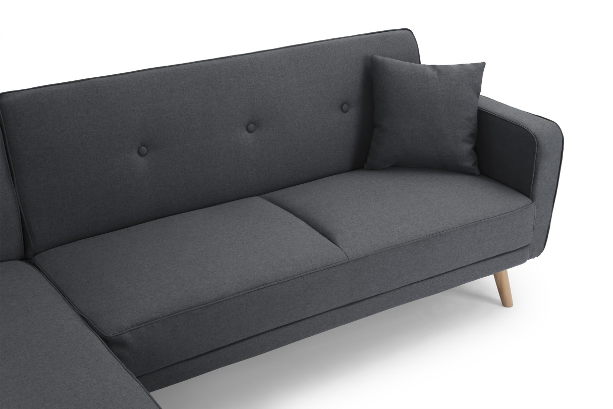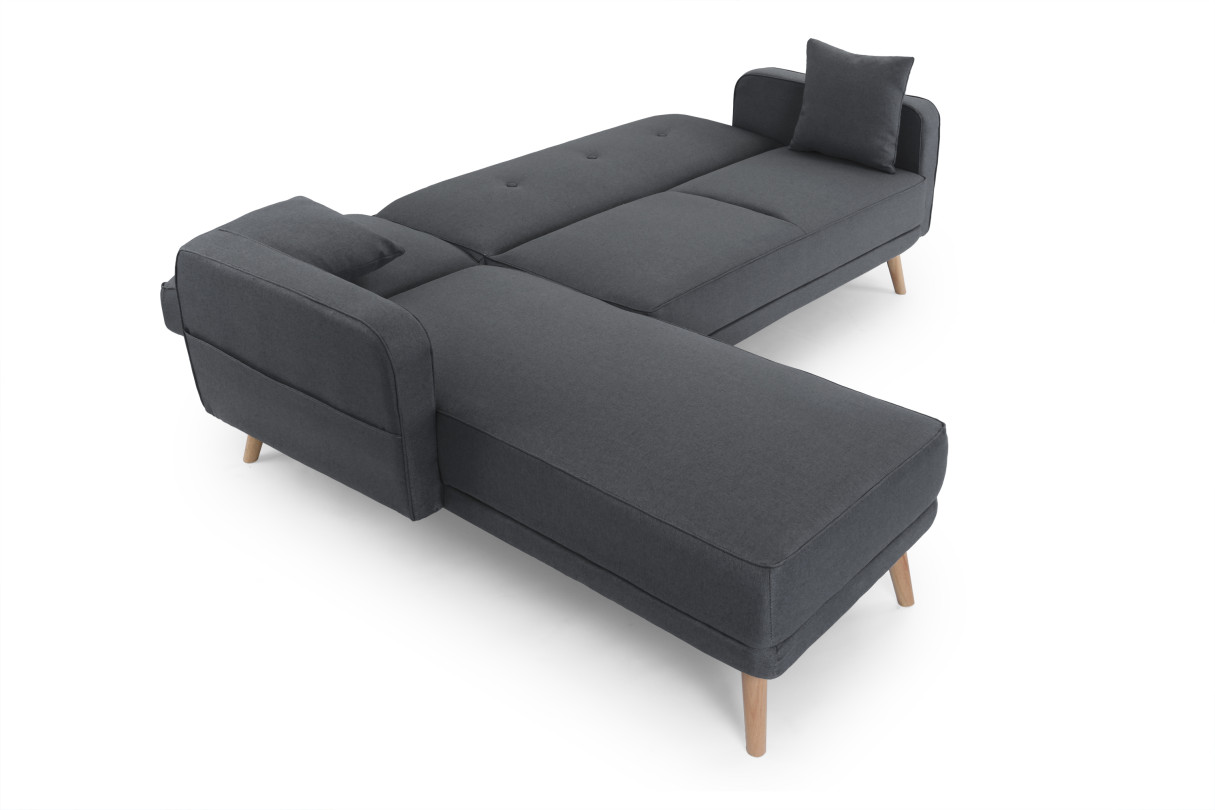 L'angle de ce canapé scandinave est réversible, ce qui lui permet de s'adapter à la configuration de tous les intérieurs. Vous pouvez ainsi changer la méridienne de côté au gré de vos envies : à droite ou à gauche, c'est vous qui décidez ! Convertible en lit et très fonctionnel, le canapé KARA se déplie en quelques secondes pour offrir un espace de couchage confortable.