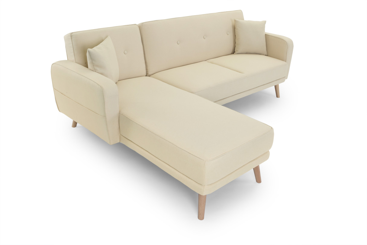 L'angle de ce canapé scandinave est réversible, ce qui lui permet de s'adapter à la configuration de tous les intérieurs. Vous pouvez ainsi changer la méridienne de côté au gré de vos envies : à droite ou à gauche, c'est vous qui décidez ! Convertible en lit et très fonctionnel, le canapé KARA se déplie en quelques secondes pour offrir un espace de couchage confortable.