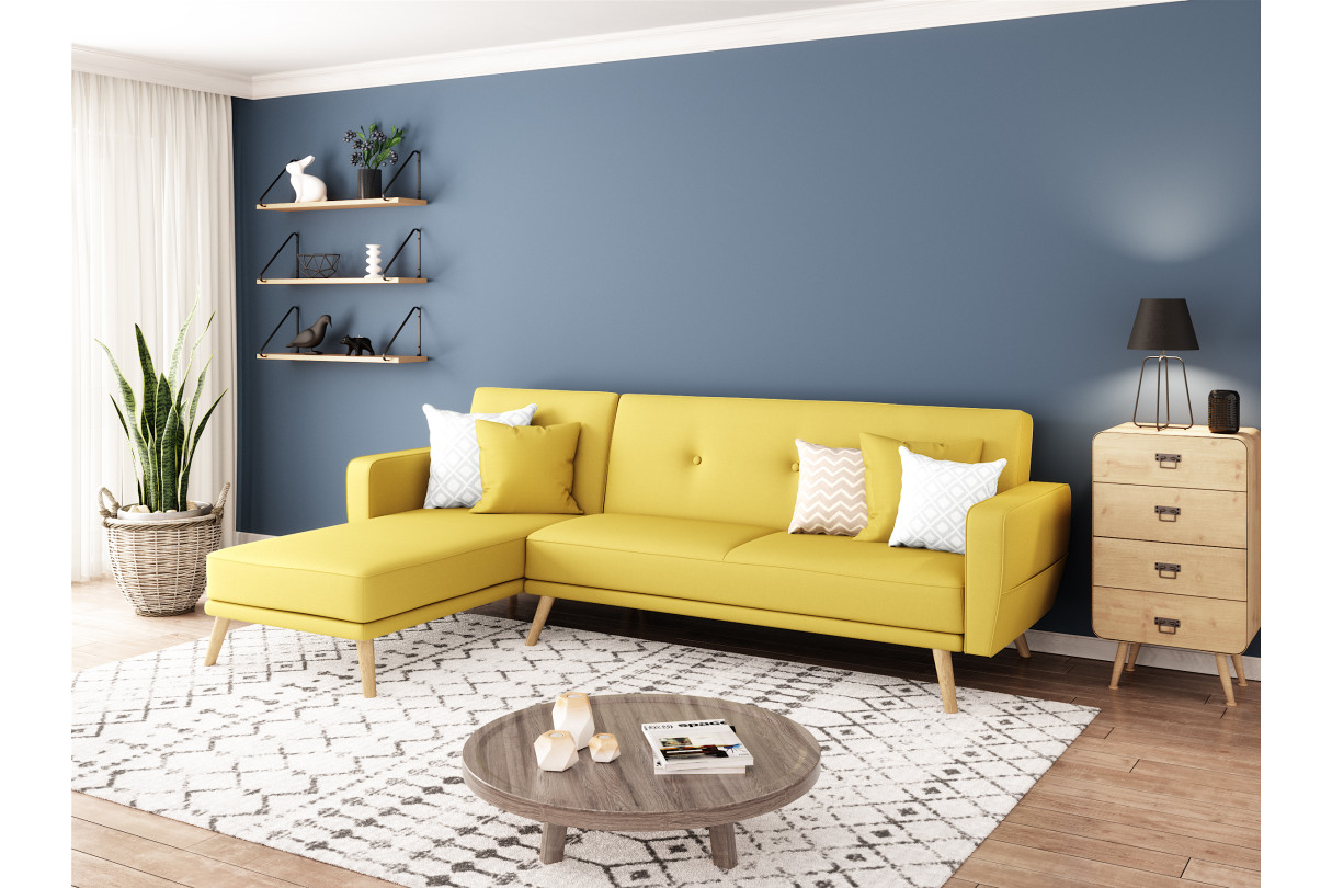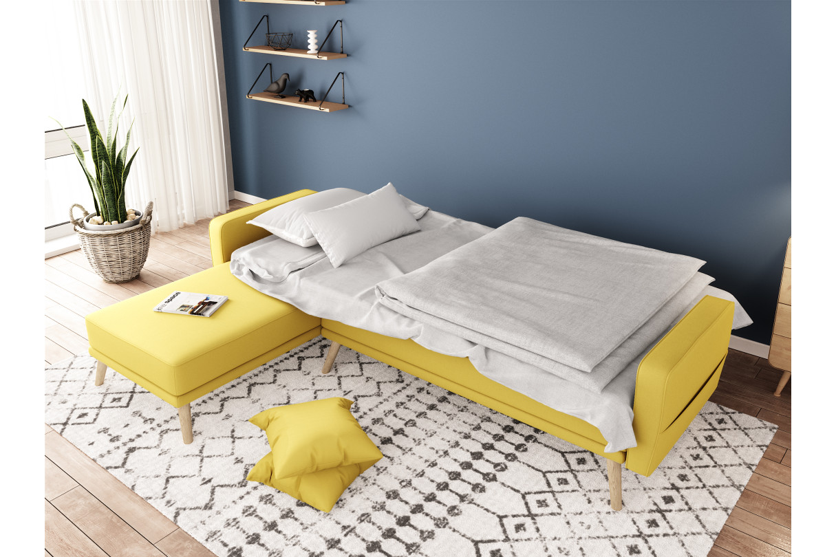 L'angle de ce canapé scandinave est réversible, ce qui lui permet de s'adapter à la configuration de tous les intérieurs. Vous pouvez ainsi changer la méridienne de côté au gré de vos envies : à droite ou à gauche, c'est vous qui décidez ! Convertible en lit et très fonctionnel, le canapé KARA se déplie en quelques secondes pour offrir un espace de couchage confortable.
