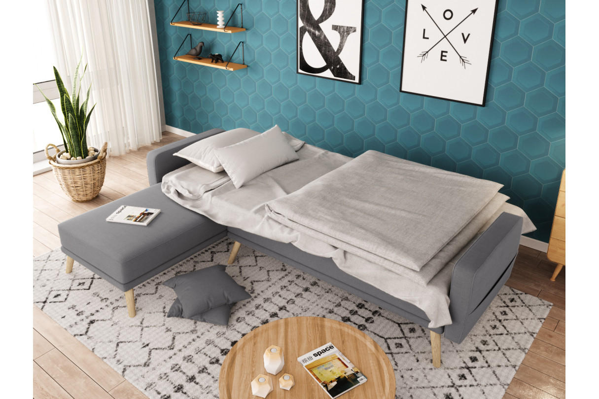 L'angle de ce canapé scandinave est réversible, ce qui lui permet de s'adapter à la configuration de tous les intérieurs. Vous pouvez ainsi changer la méridienne de côté au gré de vos envies : à droite ou à gauche, c'est vous qui décidez ! Convertible en lit et très fonctionnel, le canapé KARA se déplie en quelques secondes pour offrir un espace de couchage confortable.