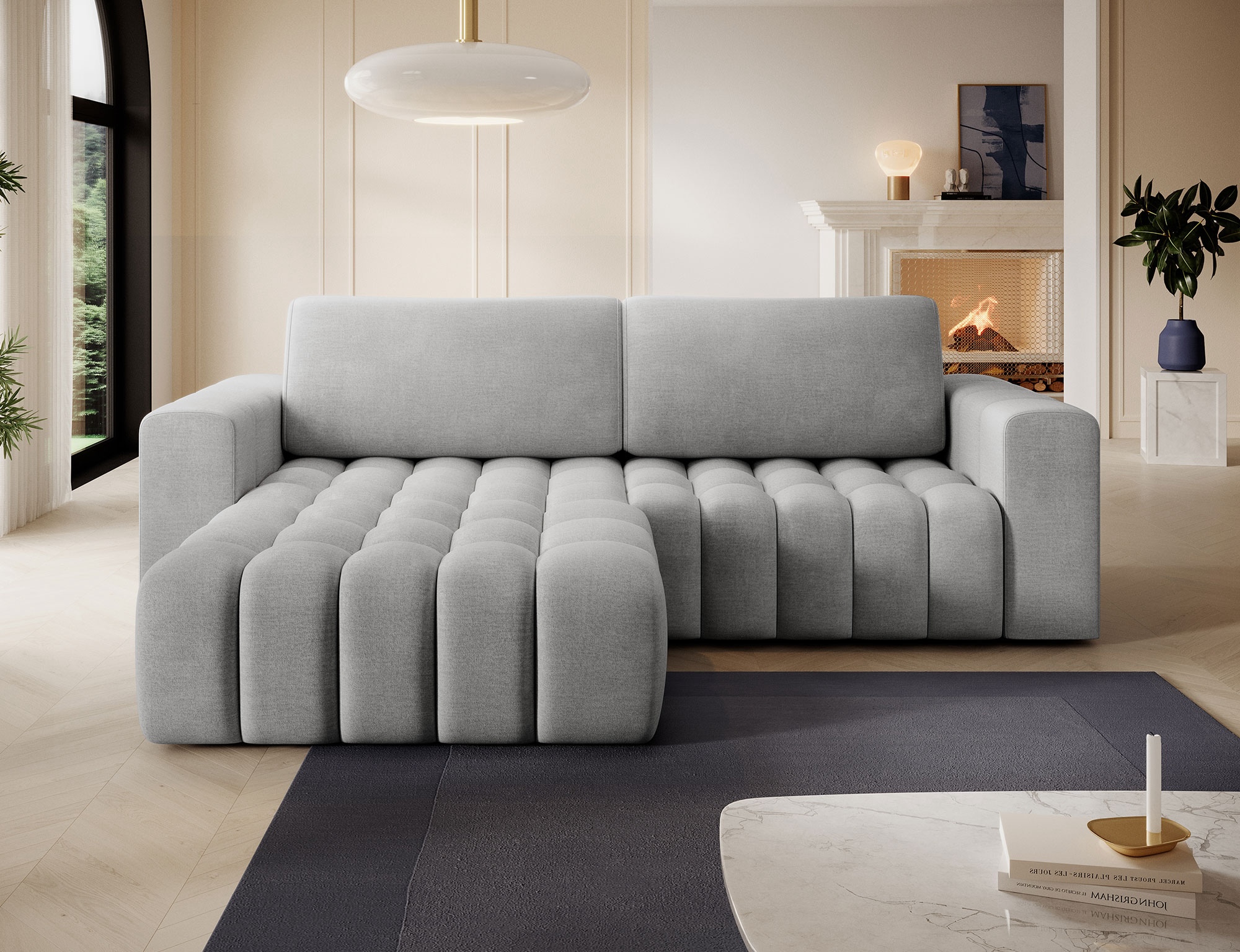 Plongez dans un univers de raffinement avec le canapé d’angle Bozen, une pièce maîtresse conjuguant esthétique sophistiquée et confort absolu. Son design capitonné, sublimé par un velours italien haut de gamme, apporte une touche de luxe à votre intérieur tout en garantissant une douceur et une résistance incomparables. Parfait pour les espaces de vie contemporains, ce canapé allie style intemporel et praticité pour une expérience unique au quotidien. Avec ses dimensions généreuses de 250 x 175 x 92 cm, le Bozen vous offre un espace d’assise spacieux et accueillant, idéal pour la détente. Grâce à son mécanisme DL, il se transforme aisément en un couchage confortable de 200 x 130 cm, parfait pour recevoir des invités en toute simplicité. Son assise en mousse HR et T2130 assure un maintien optimal et un confort longue durée, épousant parfaitement les formes du corps, même en position allongée. Un canapé ingénieux et polyvalent Au-delà de son allure prestigieuse, le Bozen se distingue par ses fonctionnalités pratiques. Il est équipé d’un coffre de rangement spacieux, idéal pour ranger couettes, oreillers et autres accessoires du quotidien. Son dossier entièrement tapissé lui permet d’être placé où bon vous semble, conservant son élégance sous tous les angles. Disponible en plusieurs coloris et finitions, dont une version en velours somptueux, ce modèle s’adapte parfaitement à votre style d’intérieur et se décline en angle gauche ou droit selon vos besoins. Revêtement : velours italien haute qualité Composition : 100% polyester Garnissage : 425 g/m², offrant un toucher doux et une grande résistance Durabilité : Résistant à l’abrasion pour une tenue parfaite dans le temps Protection : Imperméable, traité hydrofuge et anti-taches Sécurité : Matériau ignifuge pour une tranquillité absolue Entretien facile : Coussins amovibles et déhoussables, lavage en machine à froid (30°) ou à la main Caractéristiques techniques Dimensions : L 250 x P 175 x H 92 cm Assise : Profondeur 60 cm | Hauteur 40 cm | Capacité d’accueil : 4 personnes Confort : Mousse HR + T2130 pour une ergonomie et un soutien parfaits Dossier : Mousse T2540 pour un excellent maintien du dos Couchage : Oui, surface de 200 x 130 cm Mécanisme convertible : DL, simple et rapide Coffre de rangement : Oui, dimensions 95 x 59 x 20 cm Pieds : Plastique noir, hauteur 2,5 cm Structure : Bois massif de pin, garantissant solidité et durabilité Accoudoirs : Design carré et moderne Coussins inclus : Oui, rembourrés en mousse granulaire et amovibles Un canapé adaptable à vos envies Le Bozen est disponible en plusieurs teintes raffinées pour harmoniser votre intérieur selon vos préférences. Pour une ambiance encore plus sophistiquée, optez pour son revêtement en velours italien de prestige. Informations pratiques Nombre de colis : 2 Poids total : 121 kg Dimensions des colis : Colis 1 : 180 x 125 x 72 cm – 71 kg Colis 2 : 130 x 85 x 72 cm – 50 kg Garantie : 5 ans Fabrication européenne Assemblage requis : Montage partiel à réaliser à deux Pourquoi choisir le canapé d’angle Bozen convertible avec coffre de rangement ? Un design capitonné raffiné sublimé par un velours somptueux Une assise spacieuse et ultra-confortable Une fonction convertible pratique avec un couchage généreux Un coffre de rangement discret et fonctionnel Une structure robuste et durable pour une qualité haut de gamme Alliant élégance et praticité, le Bozen est le choix idéal pour un salon distingué et chaleureux. Il saura créer une atmosphère sophistiquée et accueillante, tout en vous offrant un confort incomparable au quotidien. Option(s) sélectionnée(s) : - Couleur : Gris clair - Angle : angle gauche