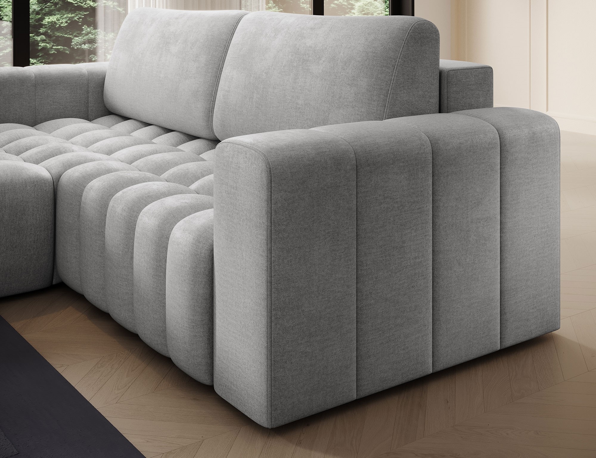 | Libellé | Canapé d’angle velours capitonné Bozen – Convertible et rangement-Couleur Gris clair-angle gauche |