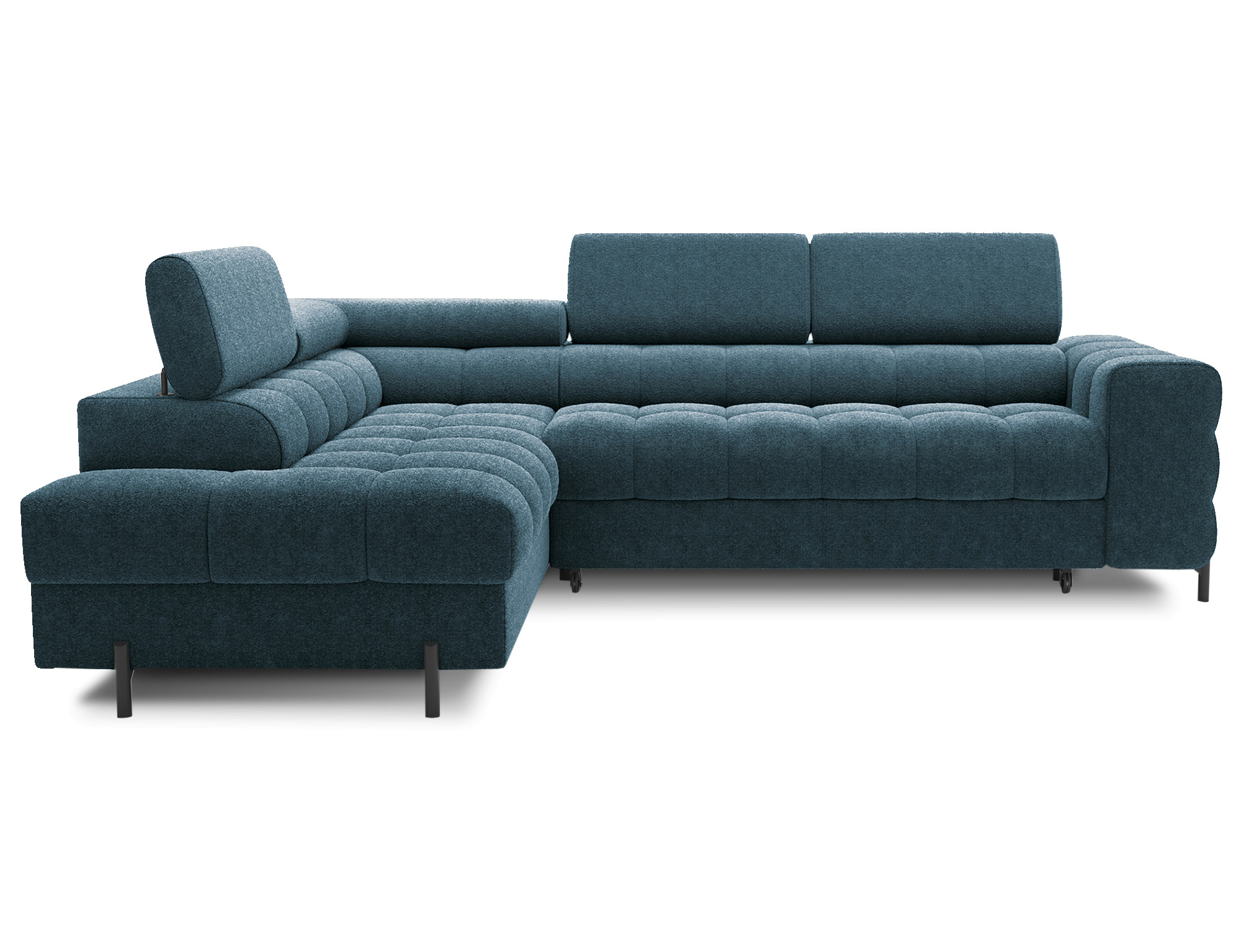| Libellé | Canapé d’angle velours capitonné Luccino – Convertible et coffre-Couleur Bleu canard-angle gauche |