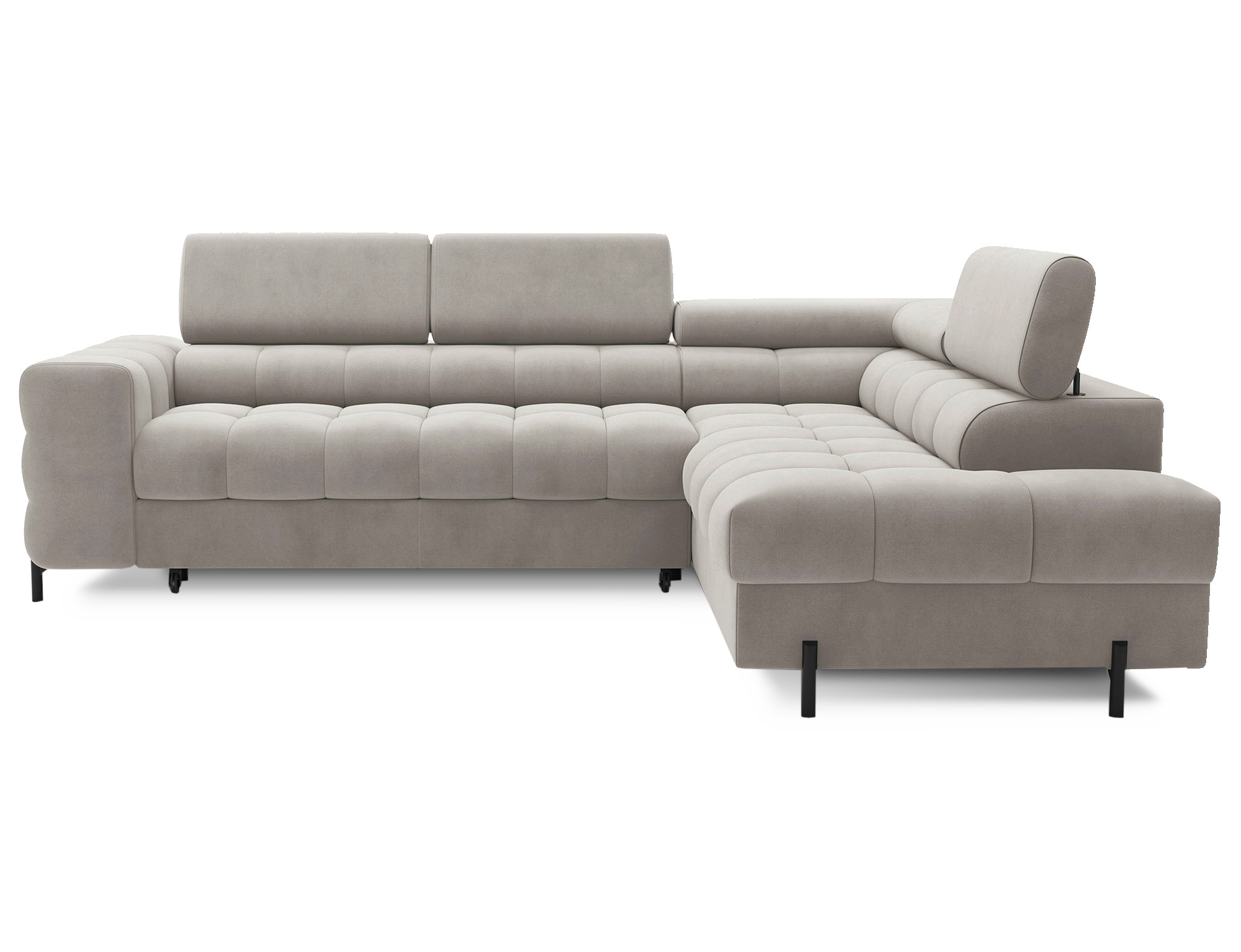 | Libellé | Canapé d’angle velours capitonné Luccino – Convertible et coffre-Couleur Marron clair-angle droit |