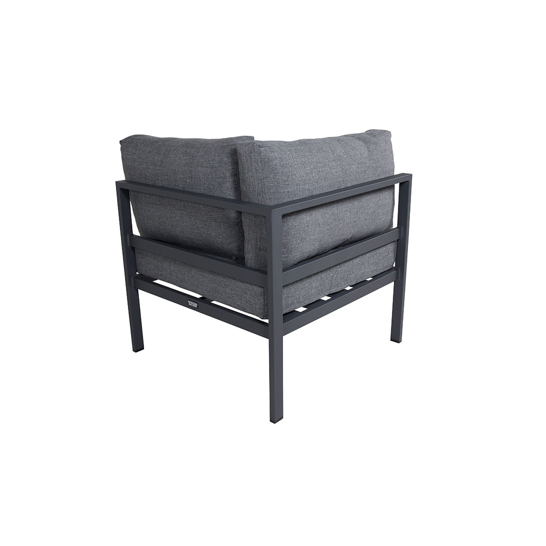 La section d'angle canapé de jardin Copacabana offre à la fois confort et style pour votre espace extérieur. Cette pièce de coin est un complément idéal à un ensemble de salon plus grand et, avec sa couleur grise et son design élégant, elle s'intègre parfaitement dans les décors extérieurs modernes et classiques. Le canapé a une hauteur d'assise de 40 cm, une largeur de 60 cm et une profondeur de 60 cm, ce qui offre une expérience d'assise confortable. Il peut supporter jusqu'à 150 kg et est conçu pour offrir un confort et une durabilité durables. Le design moderne permet de créer une oasis extérieure relaxante et élégante.