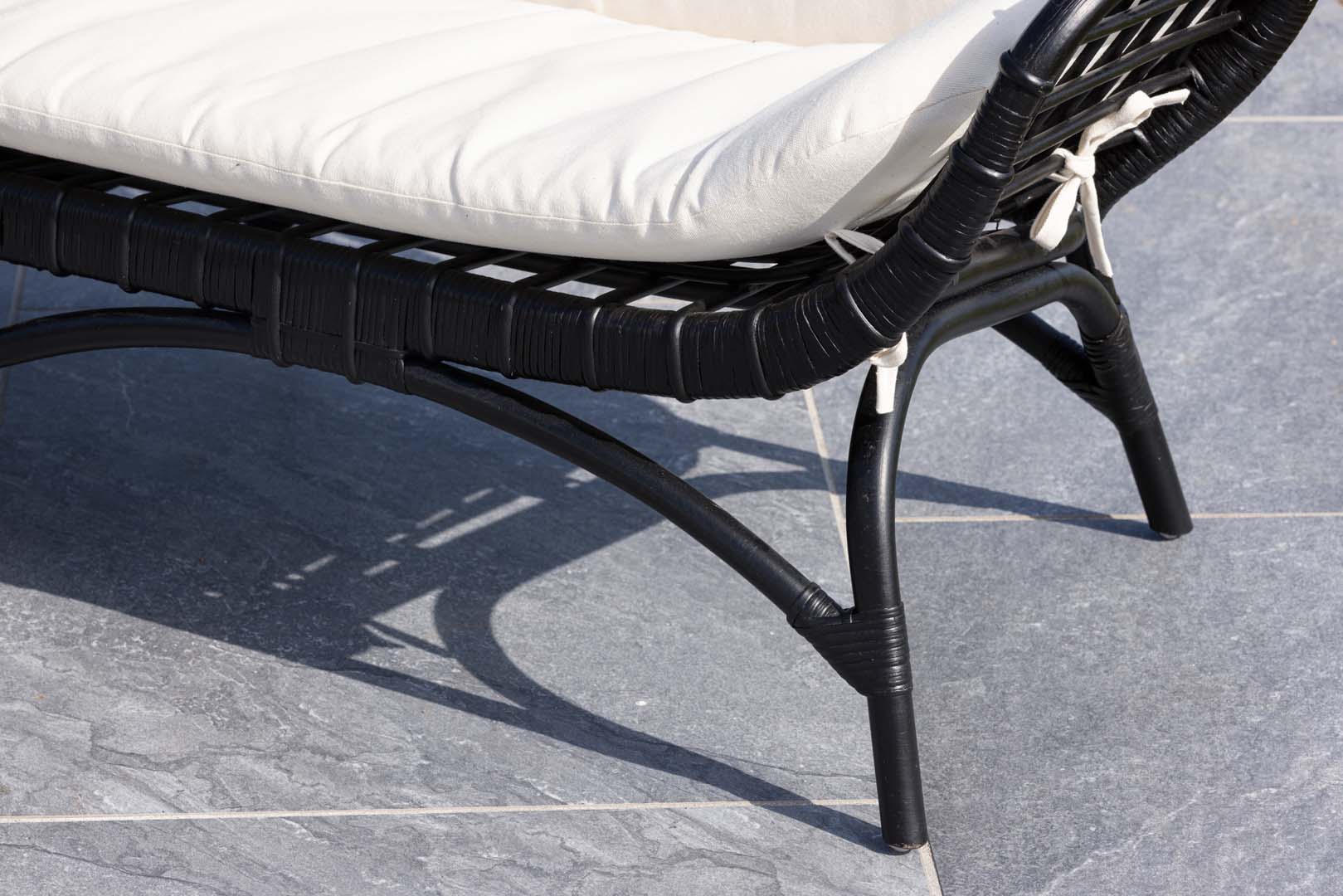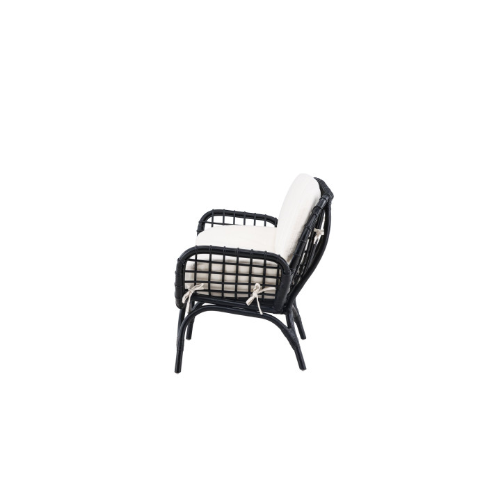 Canapé de jardin Moana incl. coussins 2 pers. noir est un meuble lounge de couleur Noir qui apporte à la fois style et fonctionnalité à votre intérieur. noir. Hauteur d'assise cm: 30. Profondeur d'assise cm: 50. Poids max. kg.: 120. Ce produit a été créé avec un souci du détail, ce qui garantit à la fois un attrait esthétique et une grande durabilité. Il est conçu dans un souci à la fois de fonctionnalité et de style, ce qui en fait le choix parfait pour n’importe quelle pièce de votre maison. Les matériaux utilisés sont de haute qualité, ce qui confère au produit une longue durée de vie et lui permet de résister à une utilisation quotidienne. Que ce soit pour le rangement ou comme ajout décoratif, ce produit rehaussera votre décor et apportera plus de confort et d'élégance à votre maison.