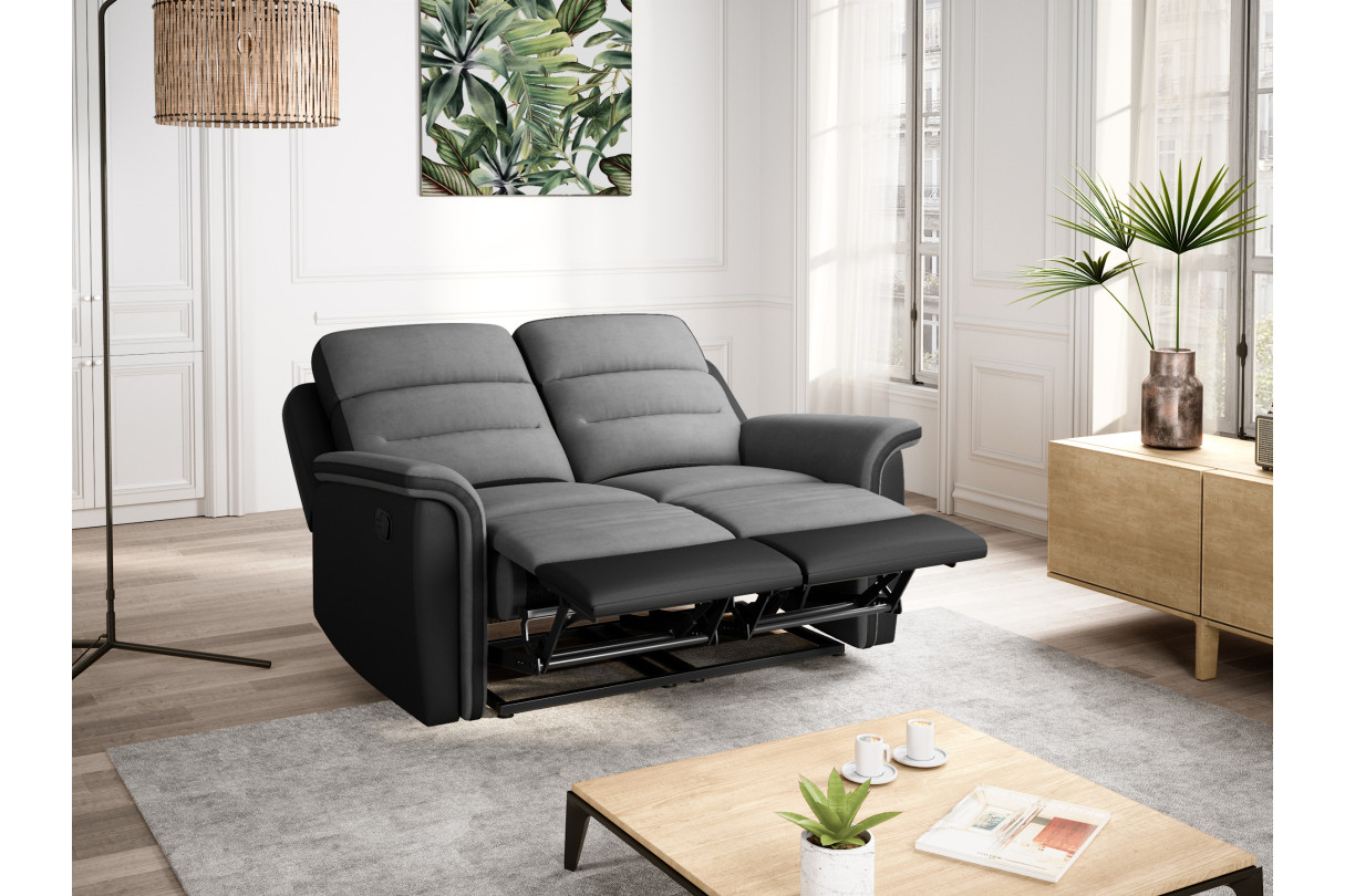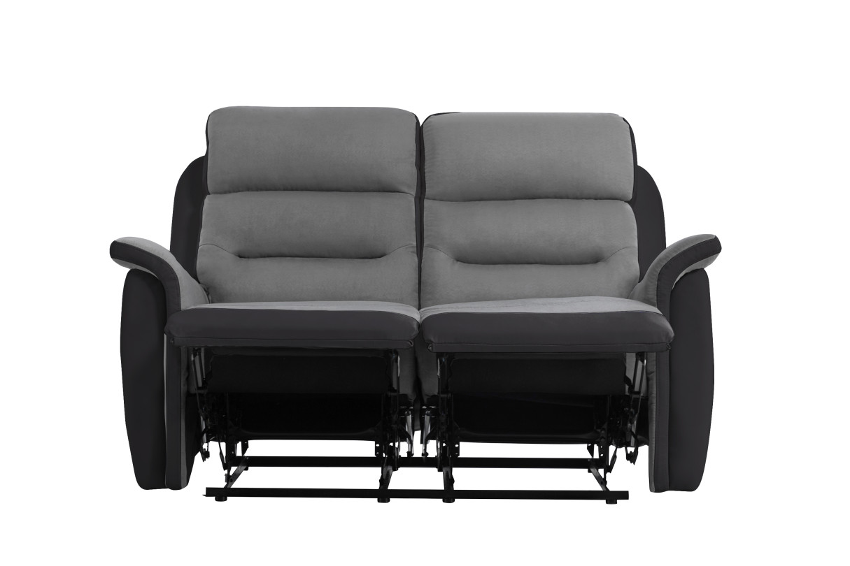 Canapé de Relaxation 2 places en Microfibre et Simili LÉON - Gris et Noir
