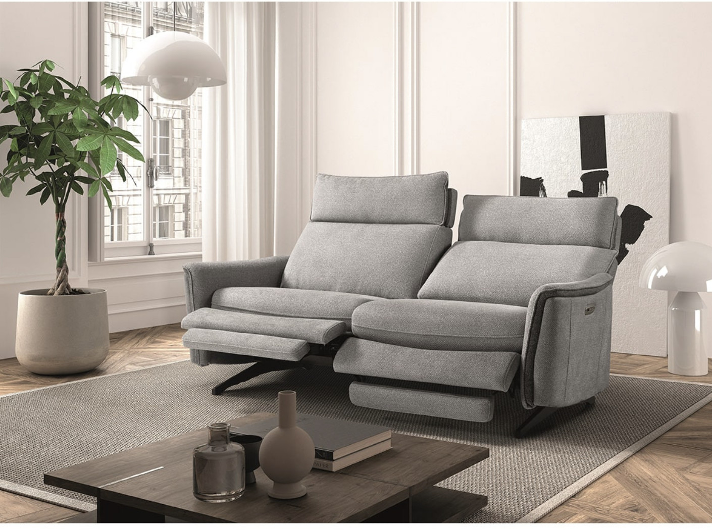 Canapé de relaxation électrique tissu chiné Riloza-Couleur Gris clair-2 places fixe