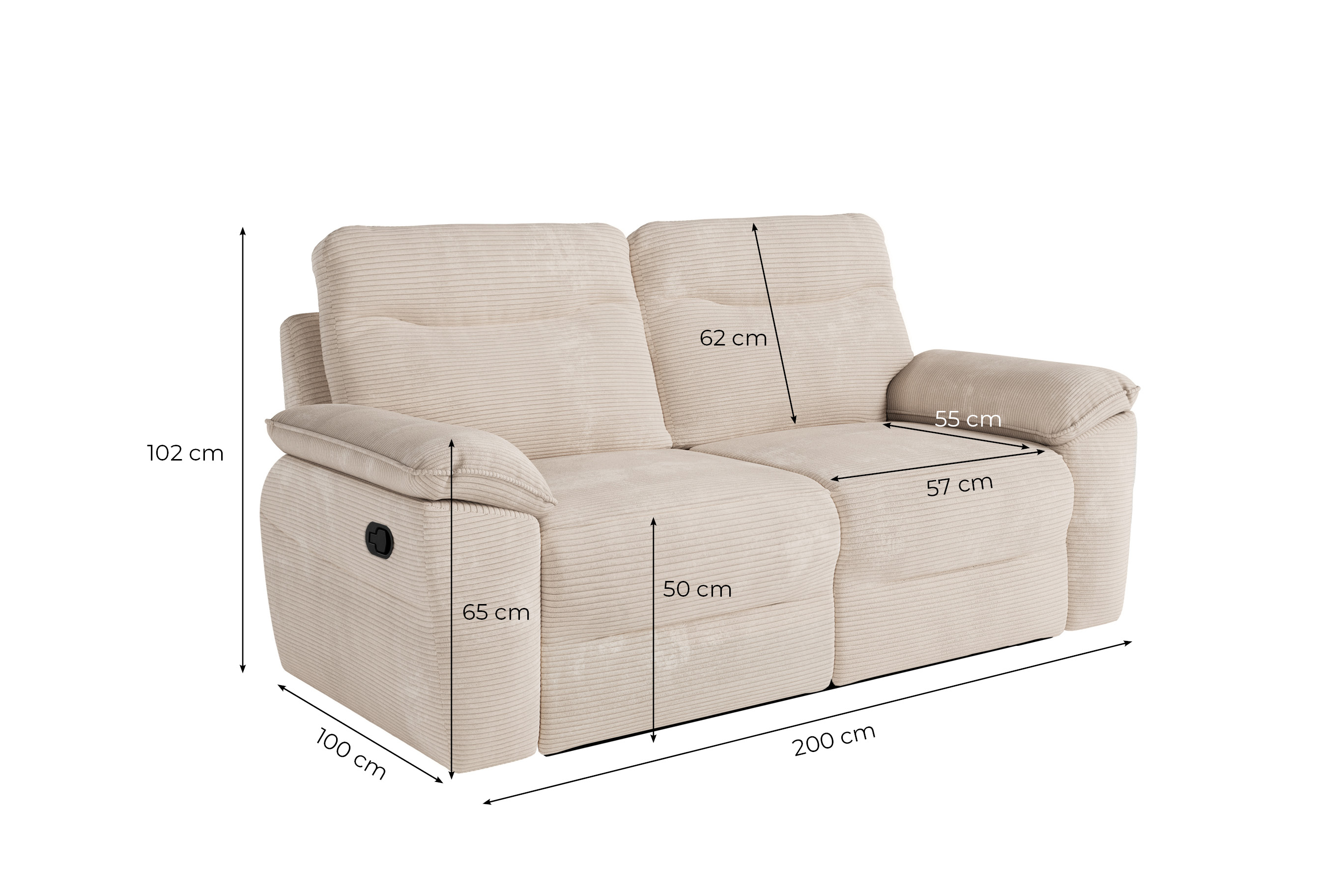 Canapé de relaxation manuel ROSS 3 places en velours côtelé