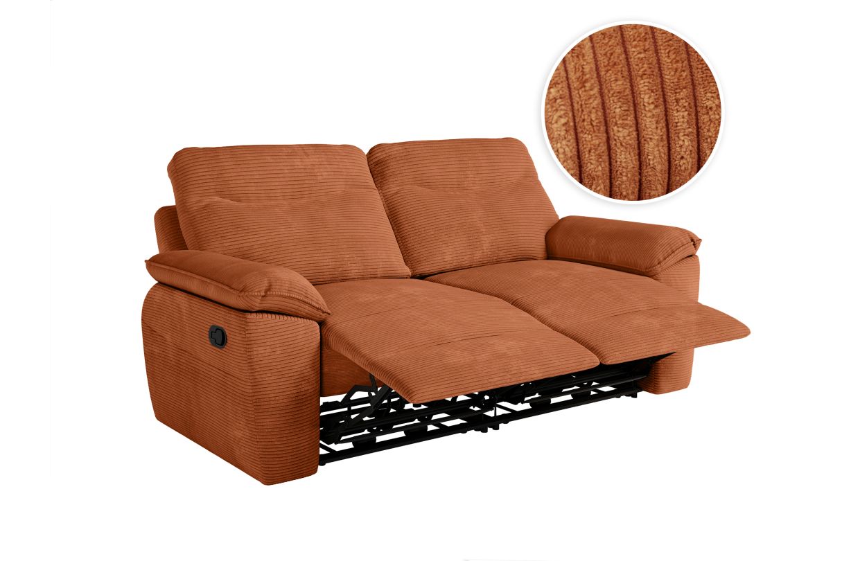 Canapé de relaxation manuel ROSS 3 places en velours côtelé - Terracotta