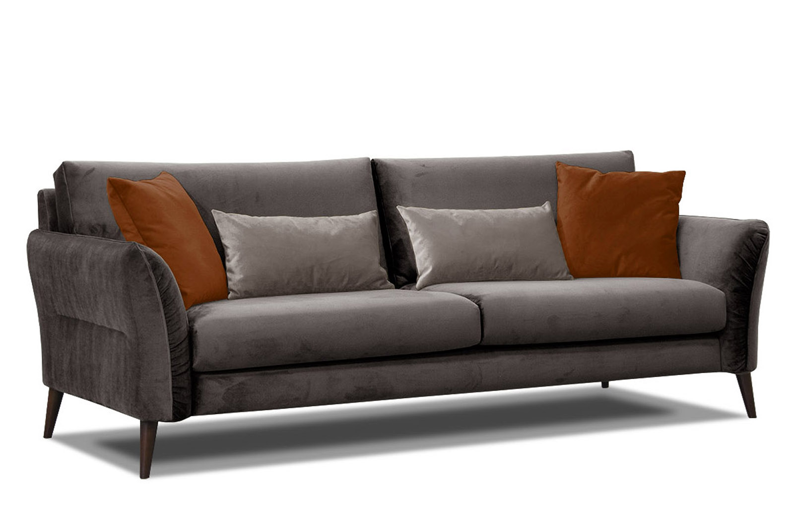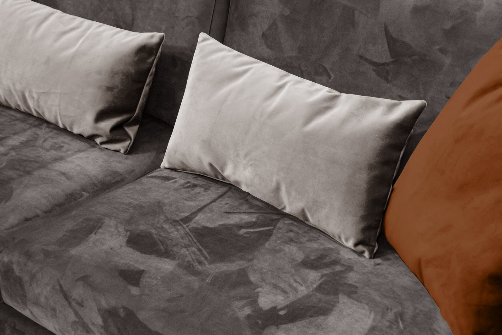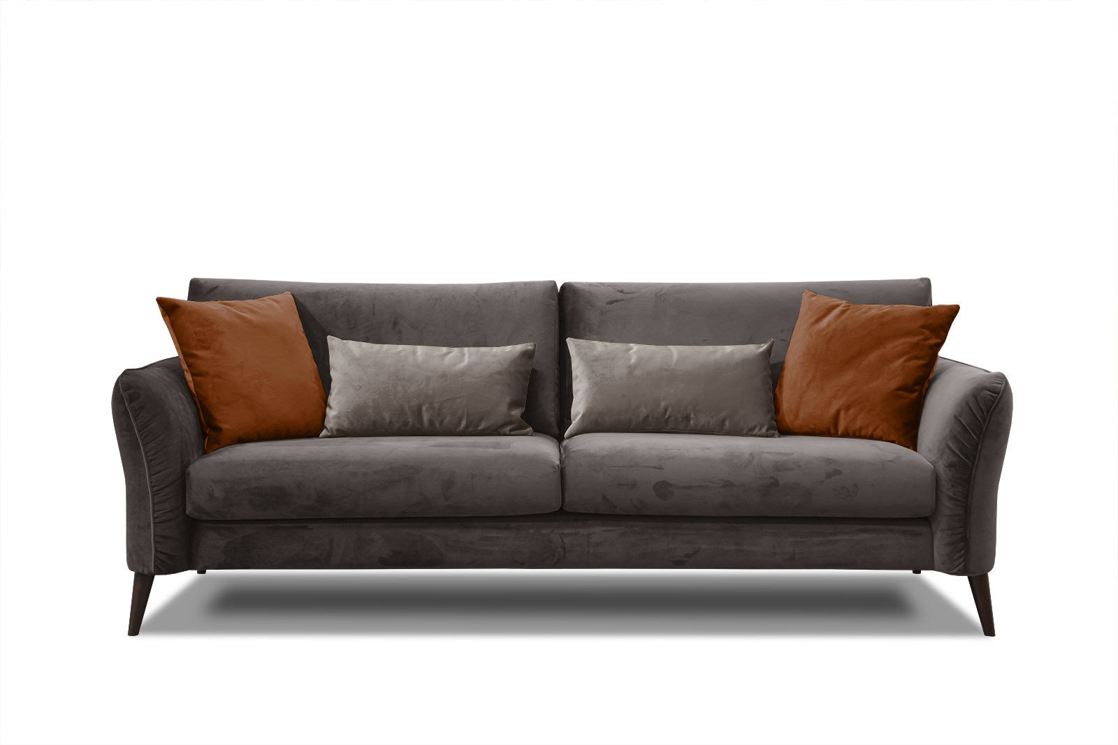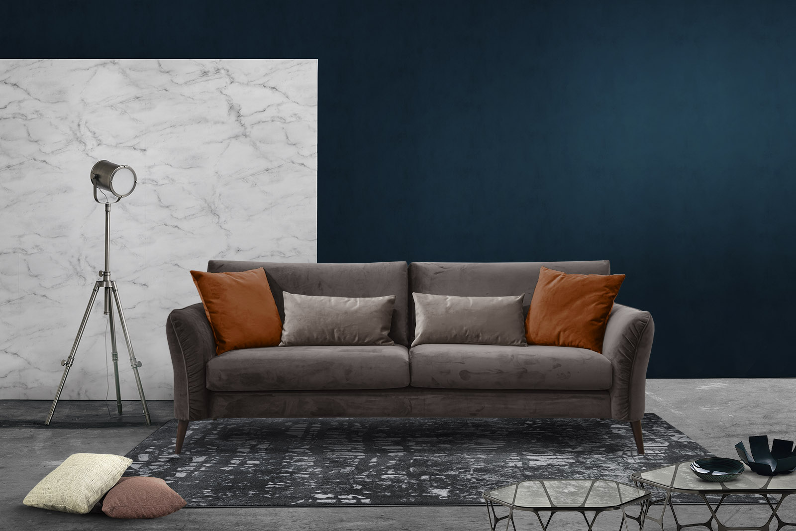 Canapé droit 3 places avec coussins tissu brun gris - FIGARI