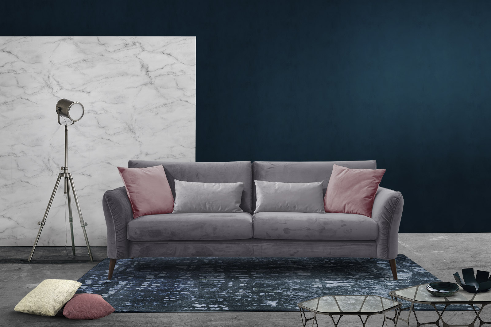 Canapé droit 3 places avec coussins tissu gris - FIGARI