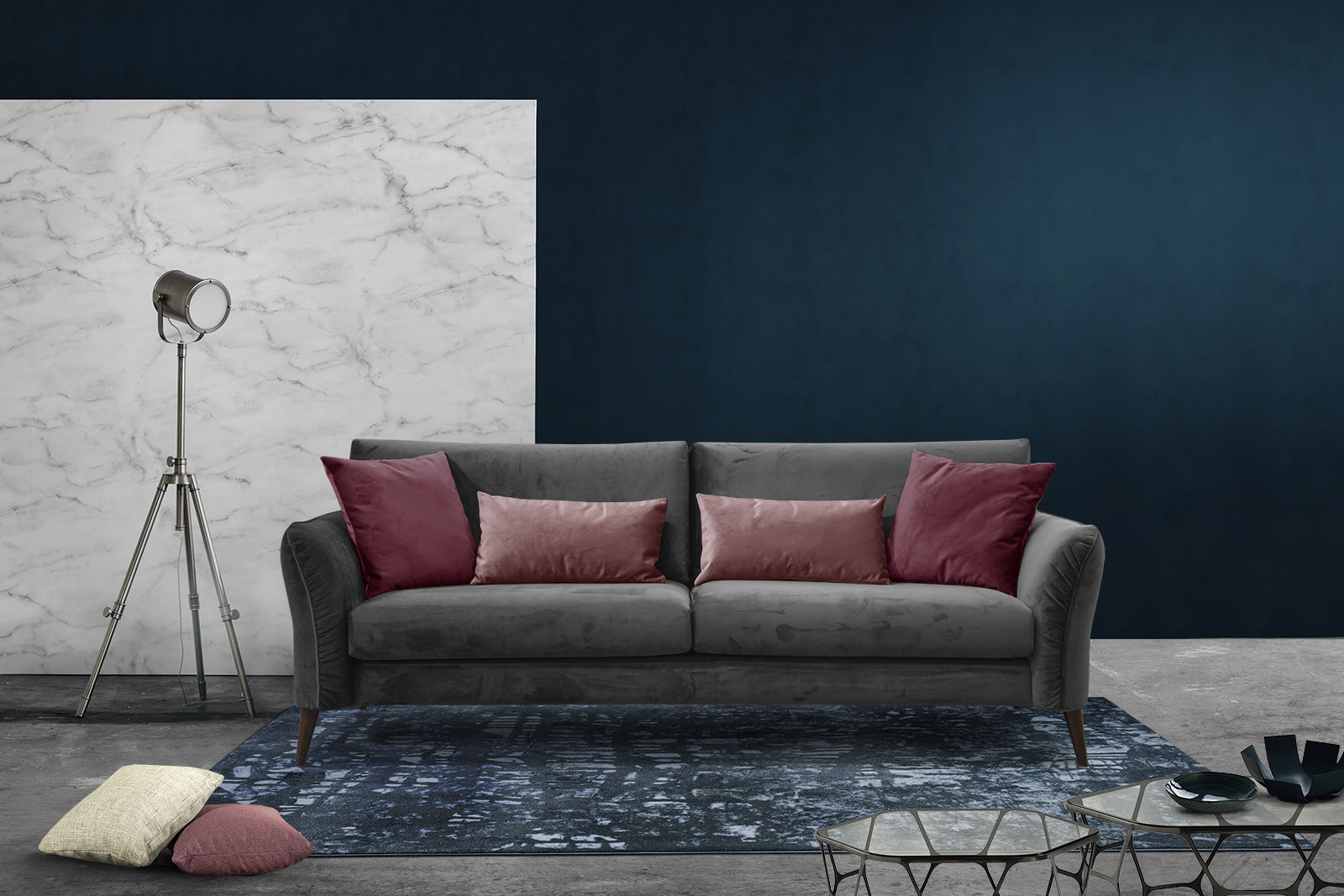 Canapé droit 3 places avec coussins tissu gris foncé - FIGARI